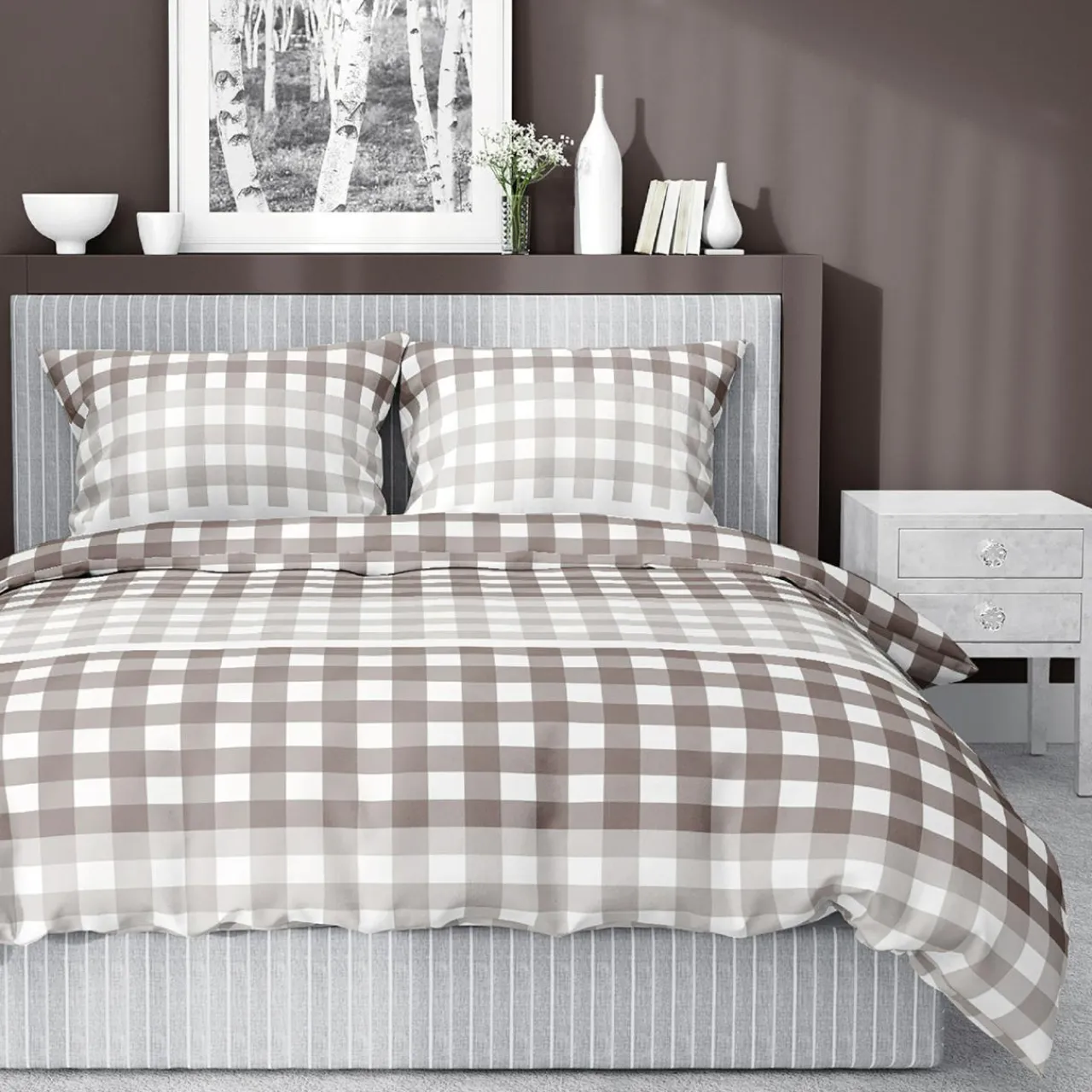 Lubisz print w kratę? W takim razie komplet pościeli HOME SATIN w beżowej kolorystyce będzie dla Ciebie odpowiedni. Wprowadzi do wnętrza ciepły i przytulny klimat.