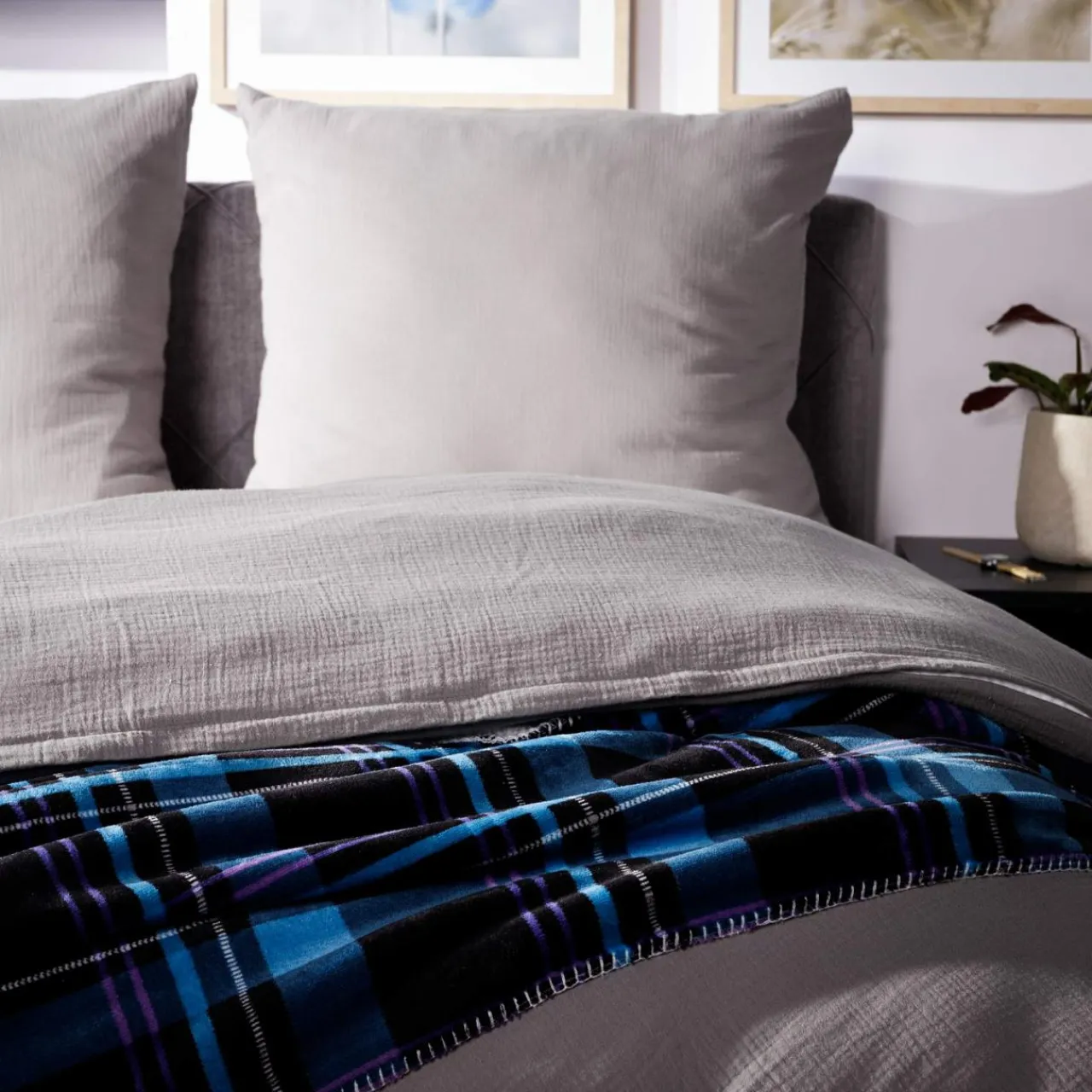 Zamek błyskawiczny jest wszyty wzdłuż dłuższej krawędzi – ułatwi nałożenie oraz wymianę pościeli.