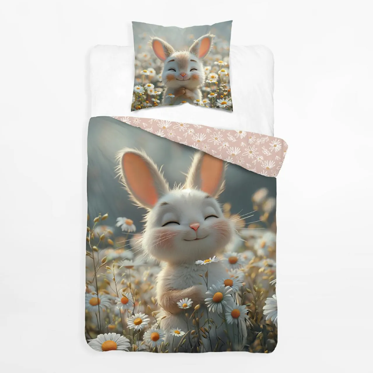 - W dzień kolorowa grafika będzie cieszyć oko, a po zmroku rozbłyśnie! Pościel posiada fluorescencyjny nadruk z uroczym zwierzątkiem – z puchatym królikiem przyjemniej się zaśnie.