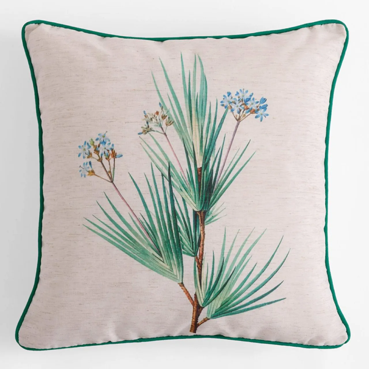 Roślinny, ciemnozielony wzór na poszewce WILDFLOWER doda wnętrzu przytulnego akcentu.