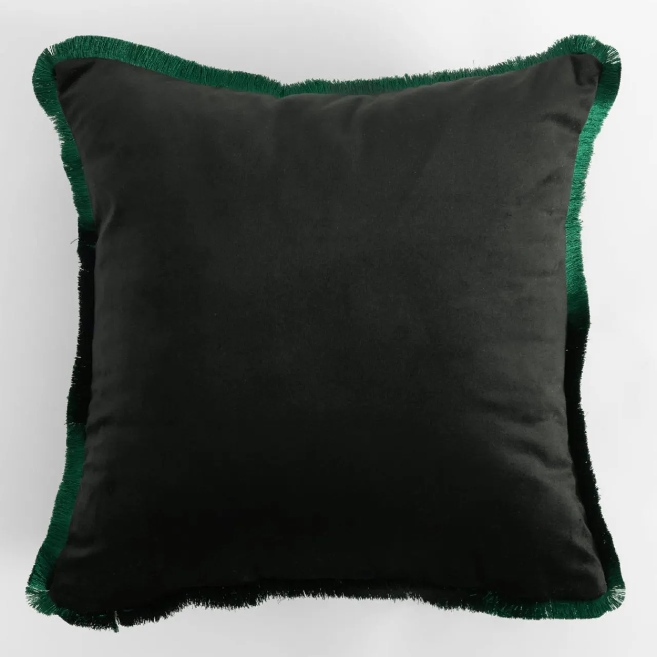 Zielona poszewka na poduszkę z kolekcji TROPICANA wyróżnia się intensywnym, lekko połyskliwym odcieniem.