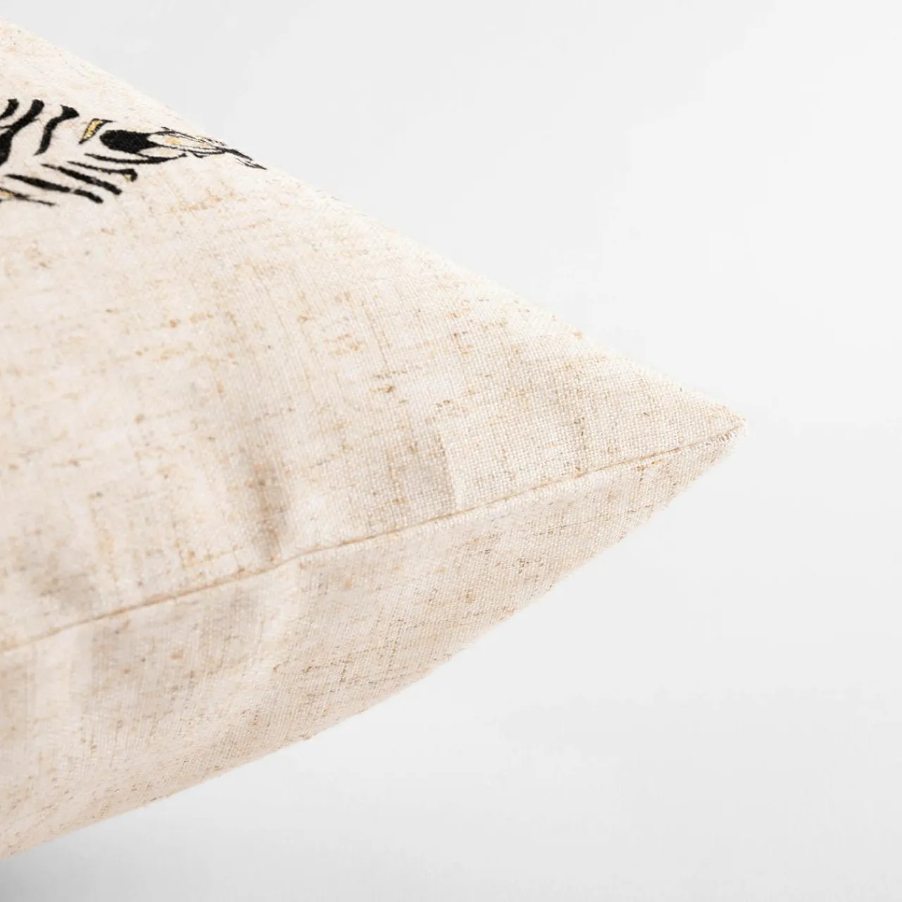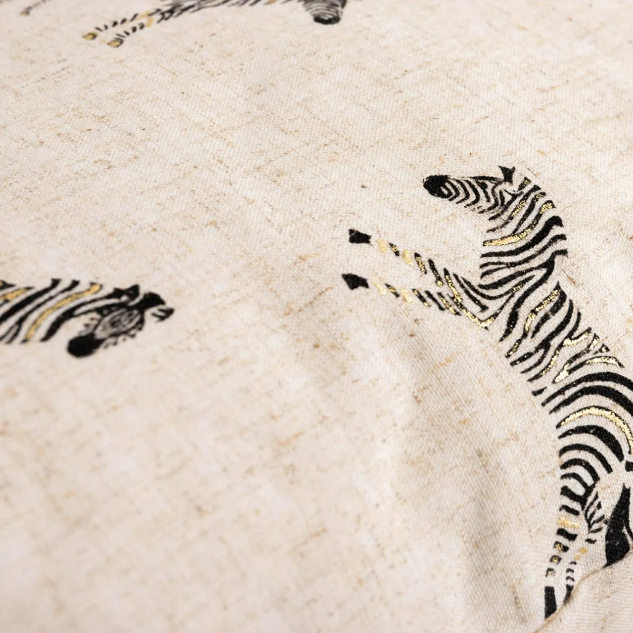 Dekoracyjna beżowa poszewka w zebry SUMMY jest uszyta z miłej w dotyku tkaniny – ma podwyższoną odporność na blaknięcie i ścieranie.