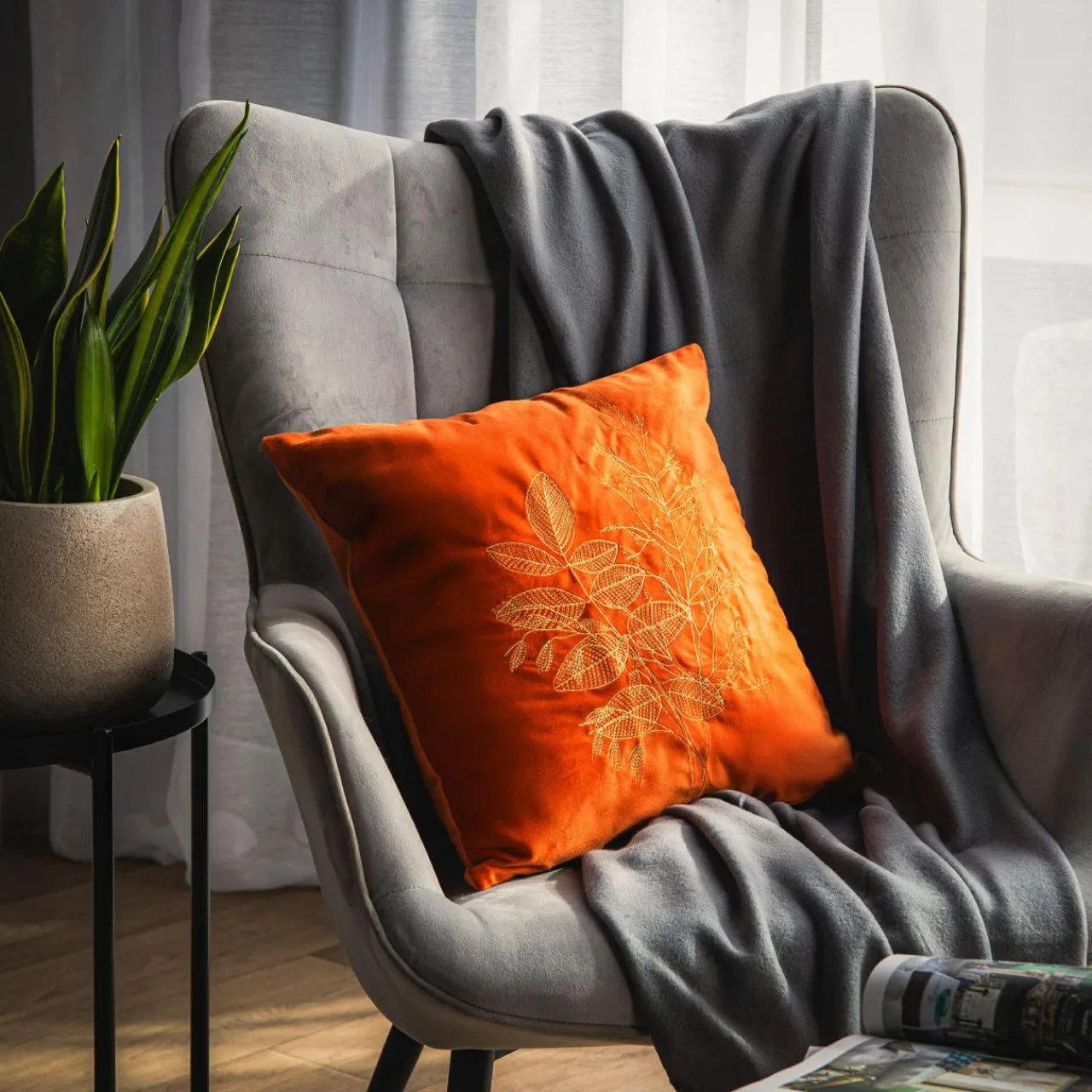 Wprowadź więcej pozytywnych barw do swojego wnętrza. Pomarańczowa poszewka MAIRO o welurowej strukturze sprawi, że aranżacja przytulny akcent.