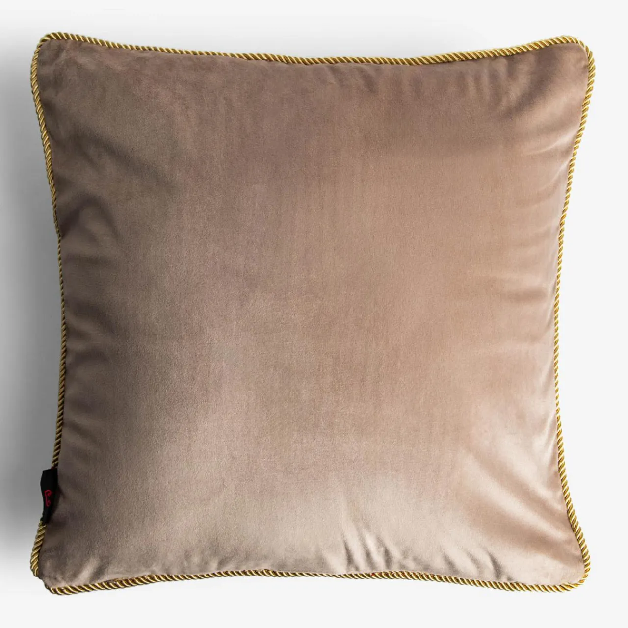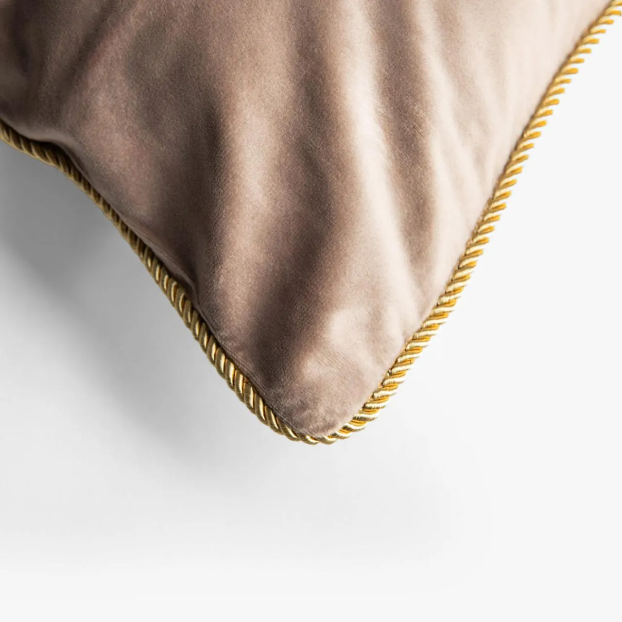 - Jest uszyta z miękkiej tkaniny o welurowej strukturze, z elegancką, złotą lamówką.
