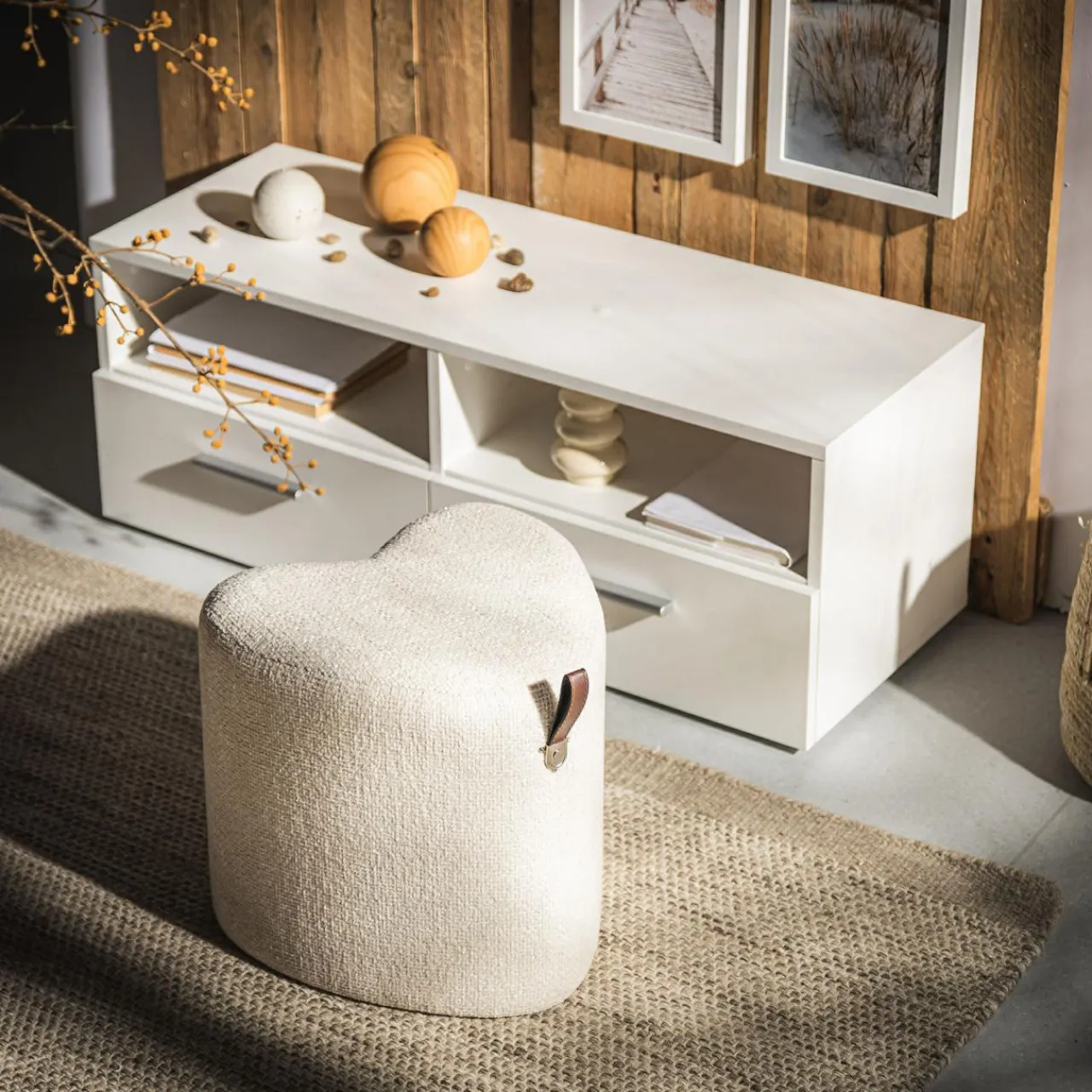 Mały puf ILLON w kształcie serca będzie uroczym dopełnieniem Twojego salonu. Dzięki niewielkiemu rozmiarowi puf sprawdzi się jako dodatkowe miejsce dla gości.