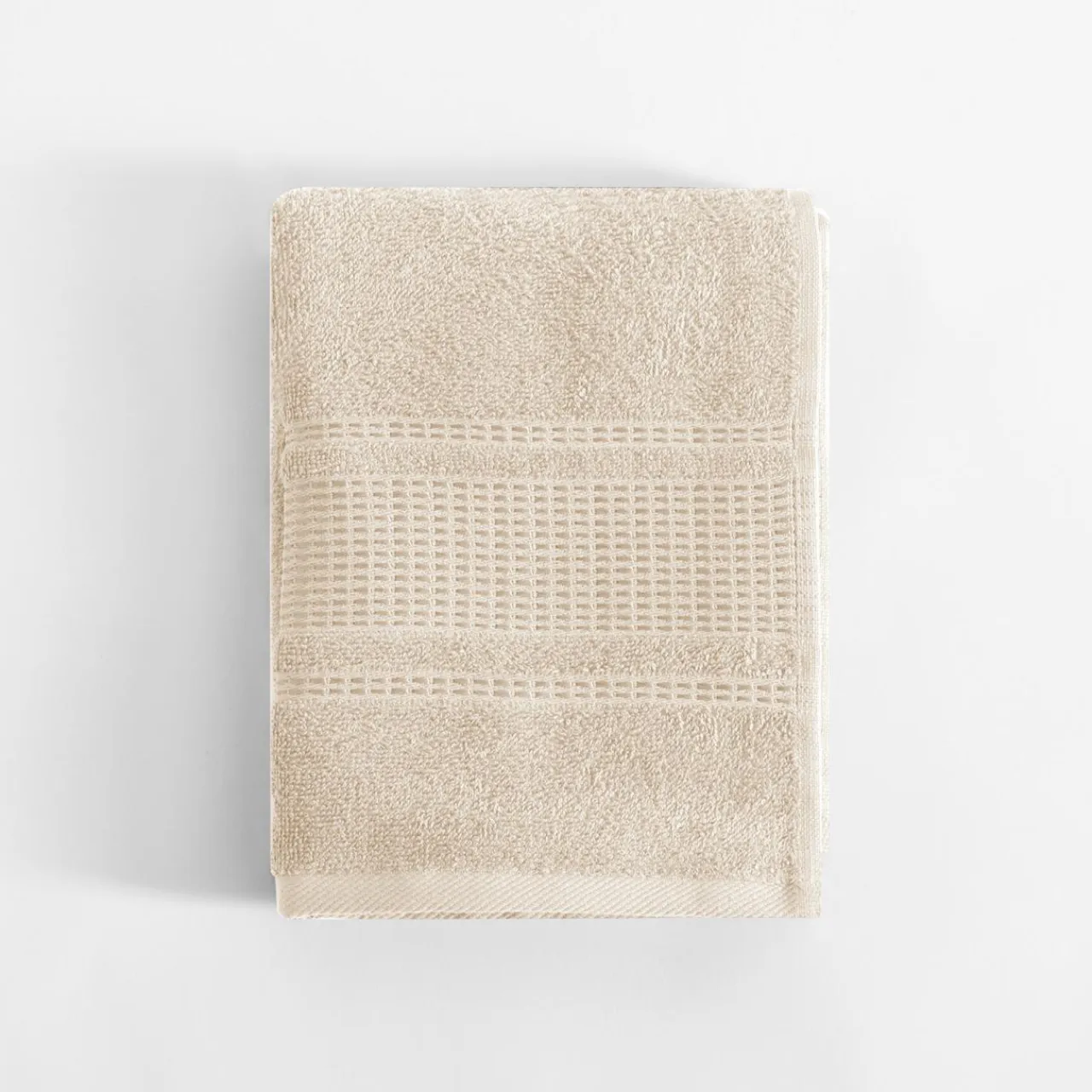 - Kremowy ręcznik pasuje do zielonej lub ciemnoszarej ściany.