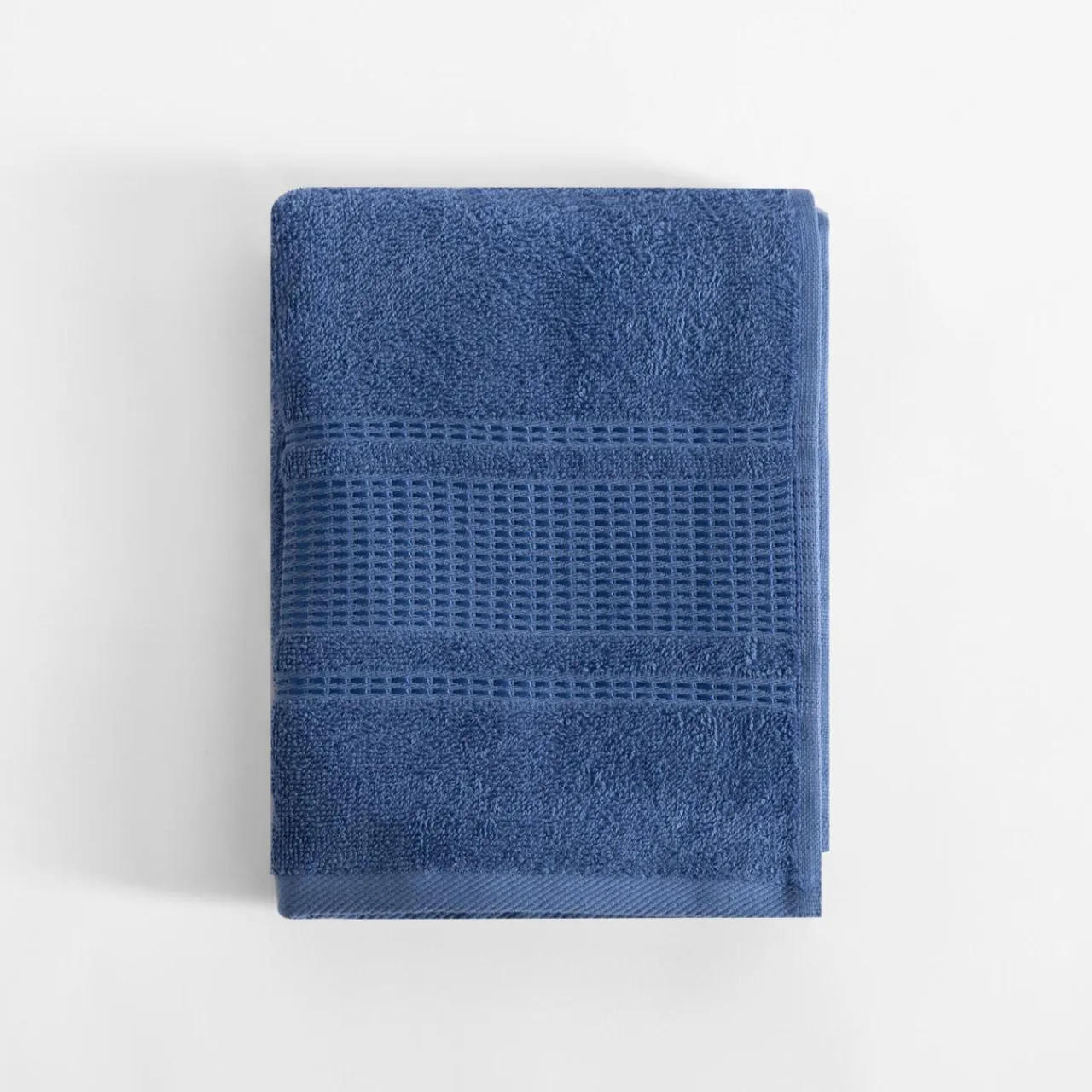 Niebieski ręcznik ROYAL jest uszyty z naturalnej bawełny. Miękki materiał nadaje się dla delikatnej skóry.
