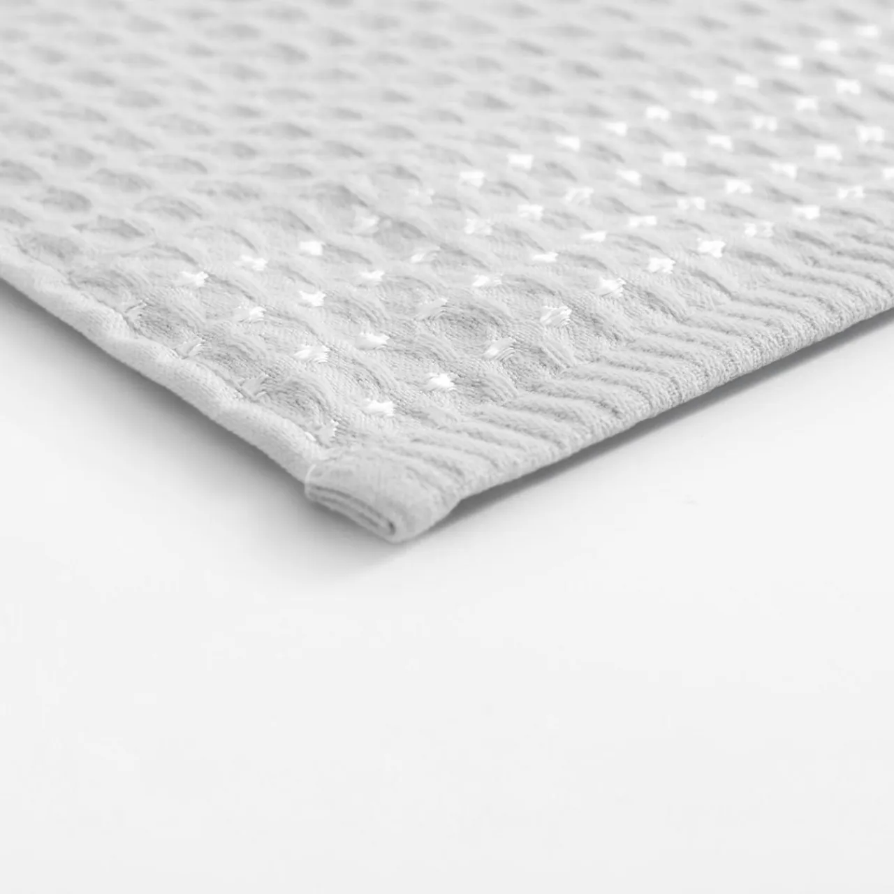Bordiura lekko się mieni – jasnoszary ręcznik zyskuje elegancki akcent.
