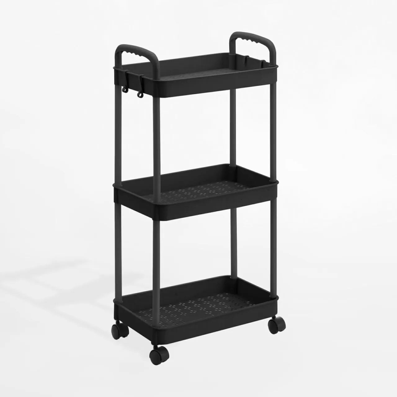 Czarny regał łazienkowy na kółkach to praktyczne rozwiązanie dla niewielkich przestrzeni.