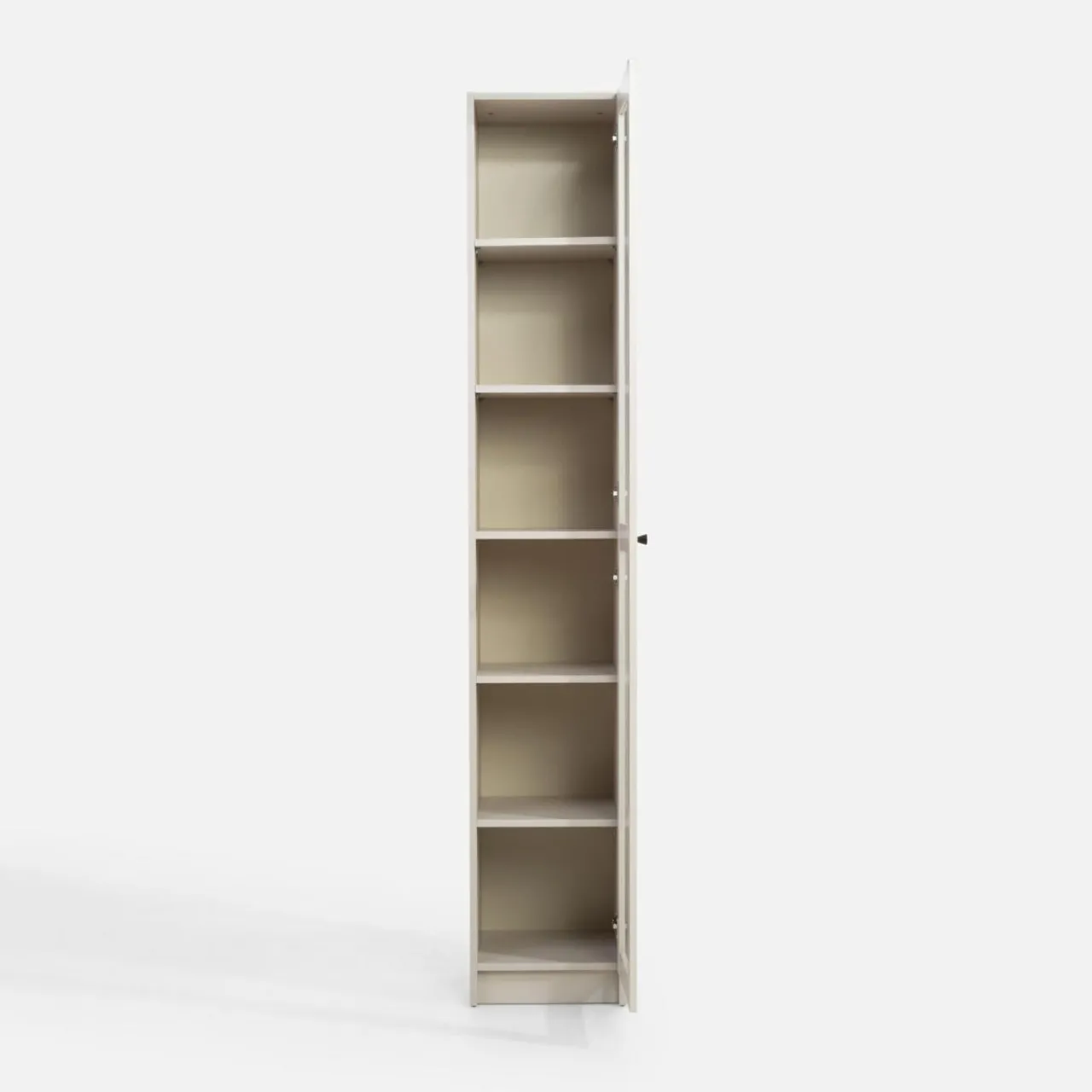 - Wąski mebel świetnie sprawdzi się jako uzupełnienie przestrzeni między pozostałymi meblami a ścianą lub zabudowa we wnęce.