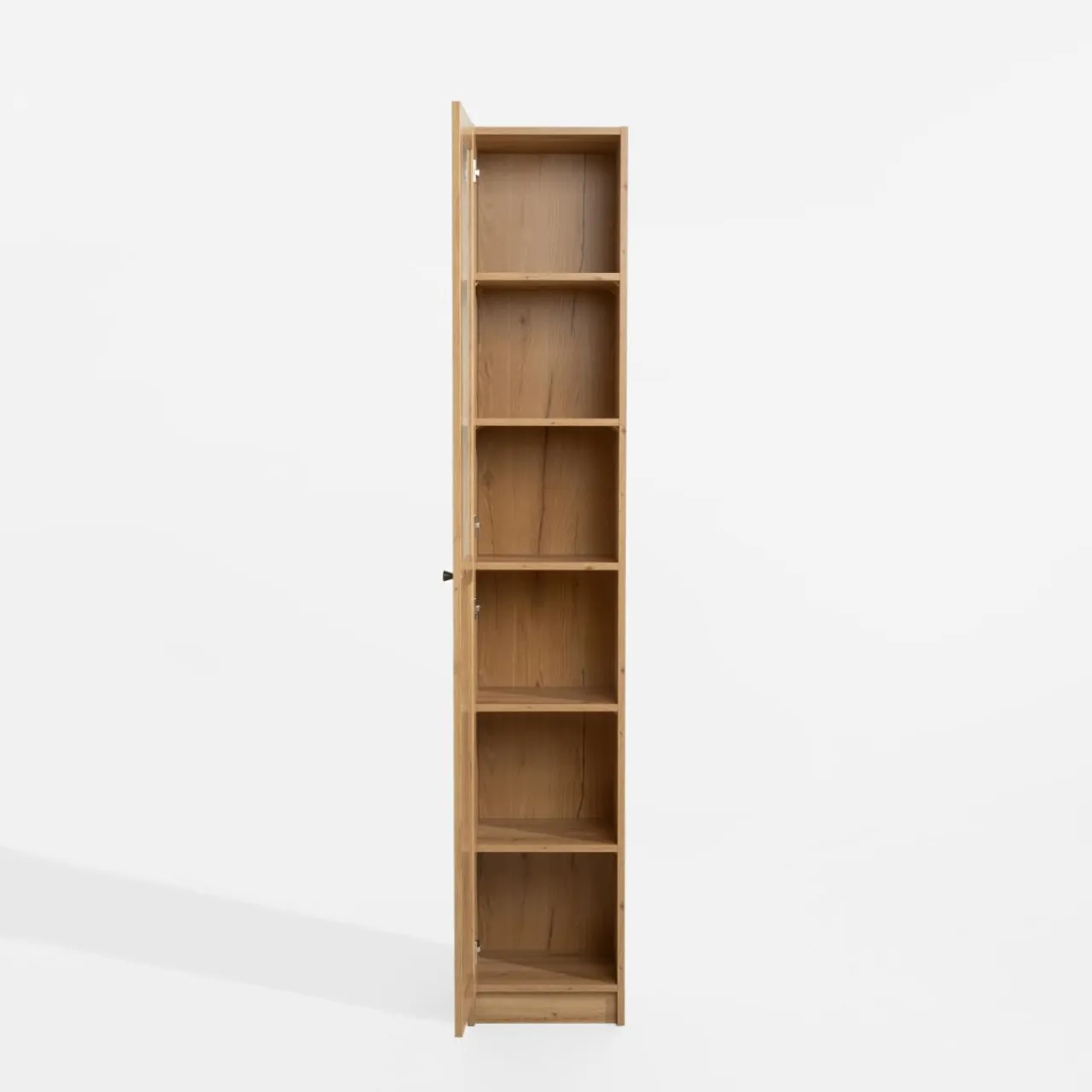 - Wąski mebel świetnie sprawdzi się jako uzupełnienie przestrzeni między pozostałymi meblami a ścianą lub zabudowa we wnęce.