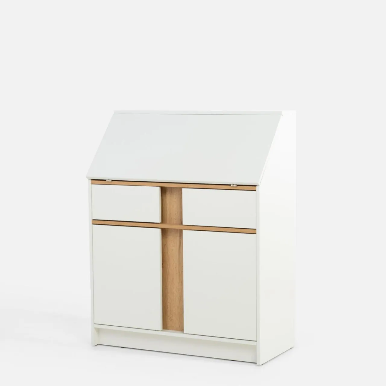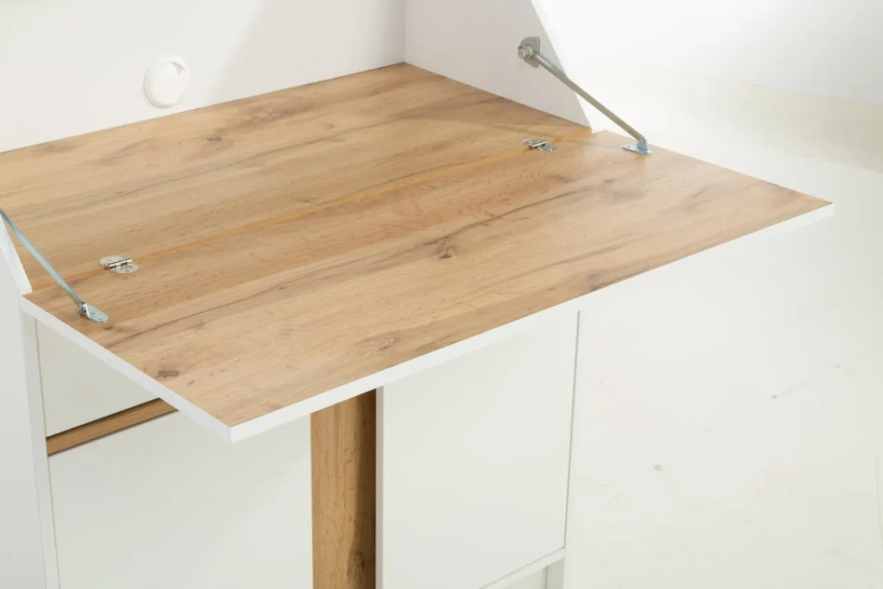 - Prosta budowa w kolorach bieli i rysunku dębu wotan świetnie wpisze się w nowoczesne i minimalistyczne wnętrza.