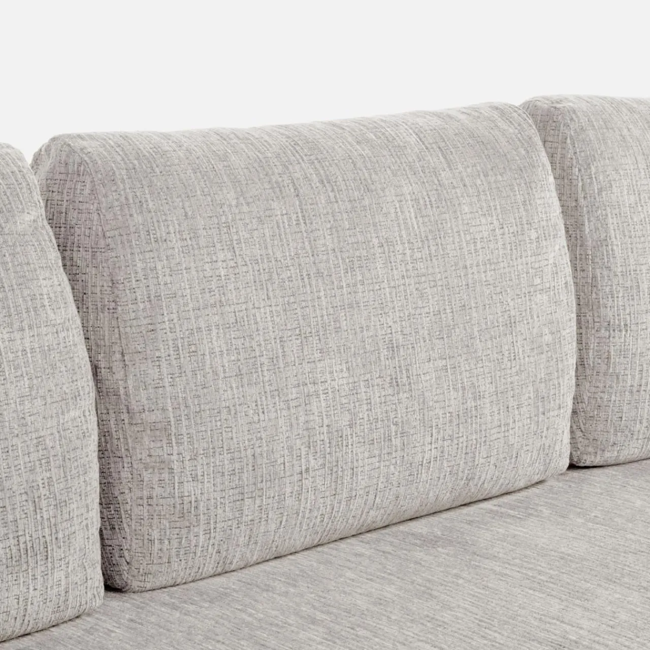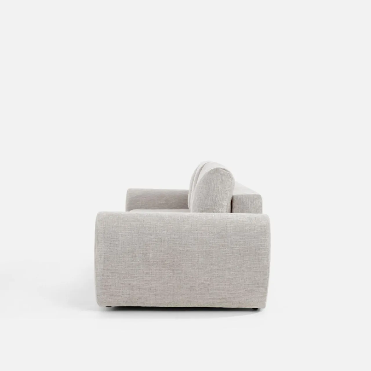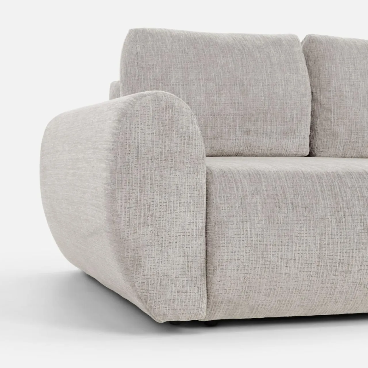Jasnoszara sofa DOLLY z tkaniny o wyraźnej strukturze sprawdzi się w salonie jako miejsce do wypoczynku i okazjonalnego przenocowania gości.
