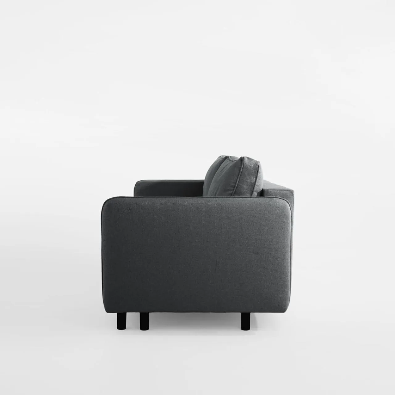 Prosta linia i wysokie nóżki sofy BRUNO świetnie wpasują się we wnętrze, gdzie króluje minimalizm i prostota. Grafitowy kolor połączysz z poduszkami i narzutą w kolorach ziemi, co pozwoli Ci podkreślić harmonijny charakter Twojego salonu.