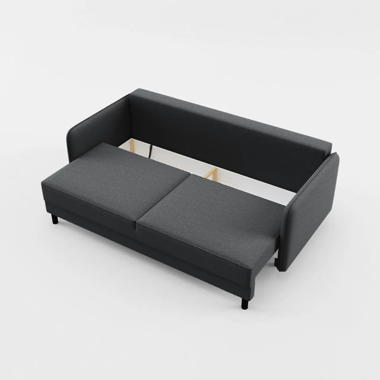 - Do pojemnika pod siedziskiem schowasz pościel, koce i inne domowe tekstylia. Dostęp do niego uzyskasz podczas rozkładania sofy.