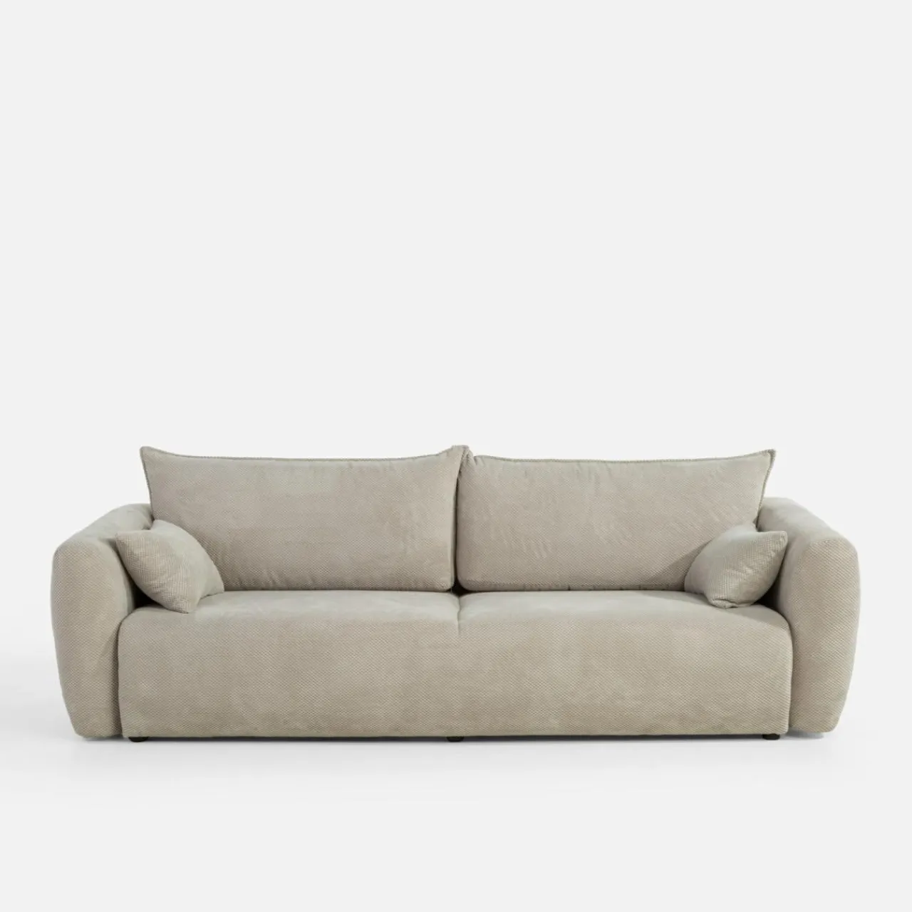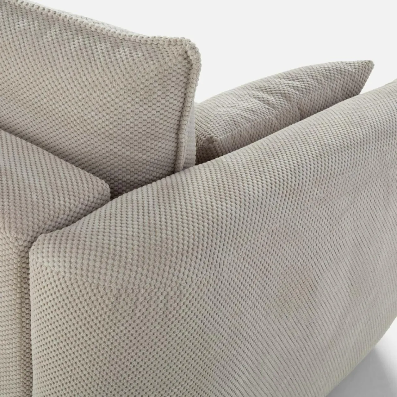 Sofę DALLAS pokryto przyjemną w dotyku tkaniną, dzięki której poczujesz ciepło w pochmurne dni. Beżowy odcień wpisze się w jasne, nowoczesne wnętrze.