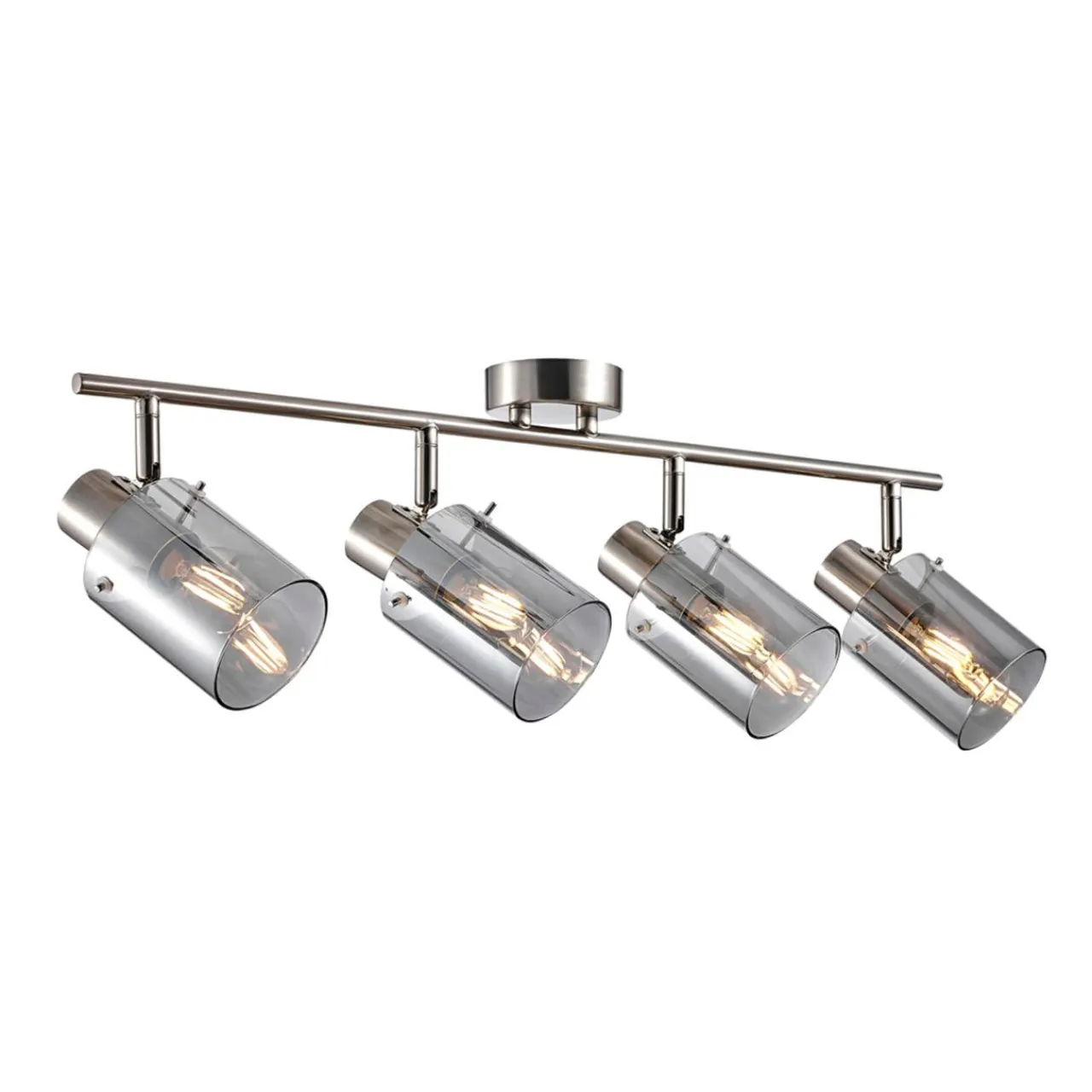 - Wykończenie spotu SARDO łączące przydymione szkło kloszy z metalicznym srebrem oprawy dopasujesz do wnętrz o chłodnej estetyce.