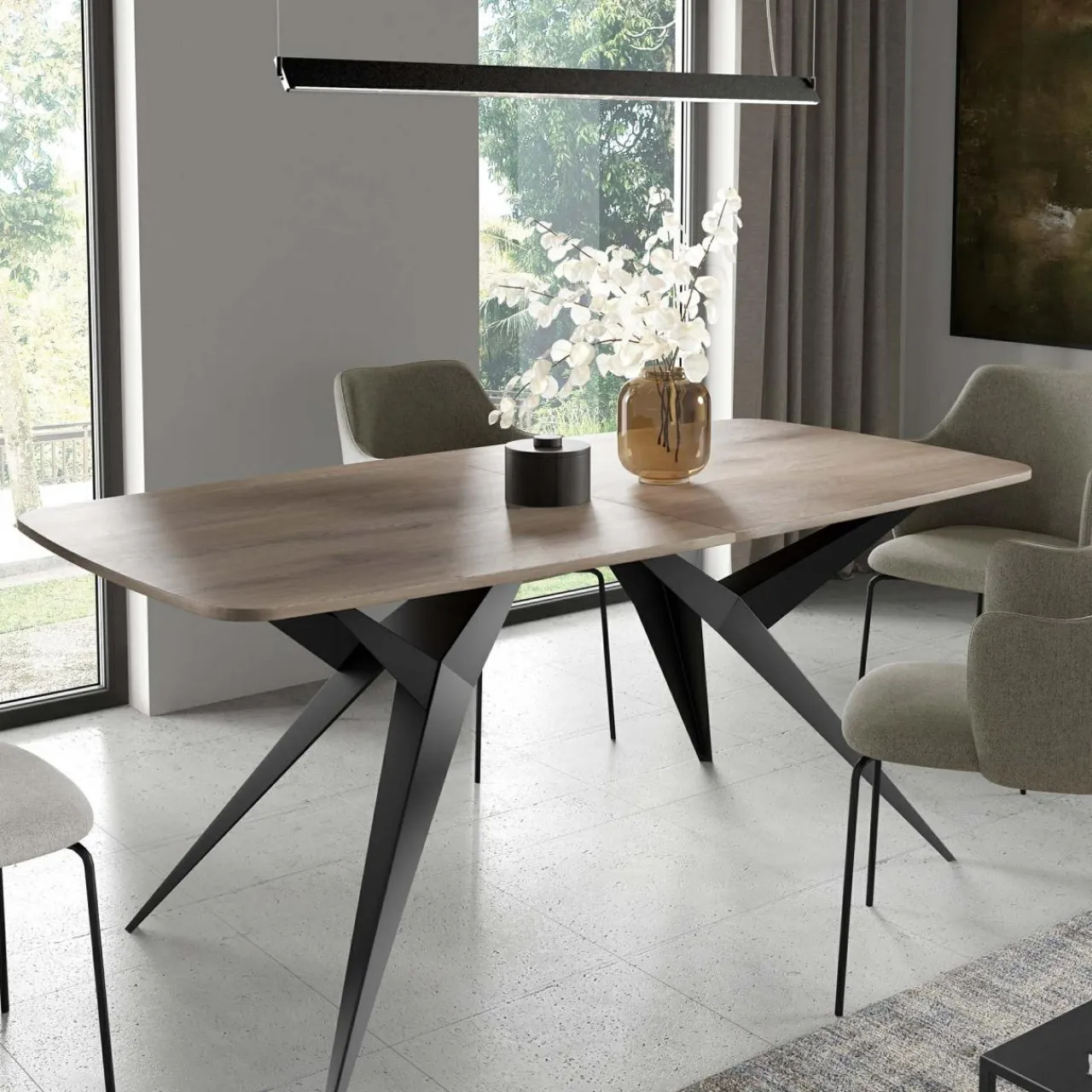 Stół Belluna to propozycja, która łączy industrialny styl z akcentem koloru drewna. Charakterystyczna podstawa w kształcie pajęczych nóg dodaje mu oryginalności i sprawia, że będzie efektownym centrum jadalni lub salonu.