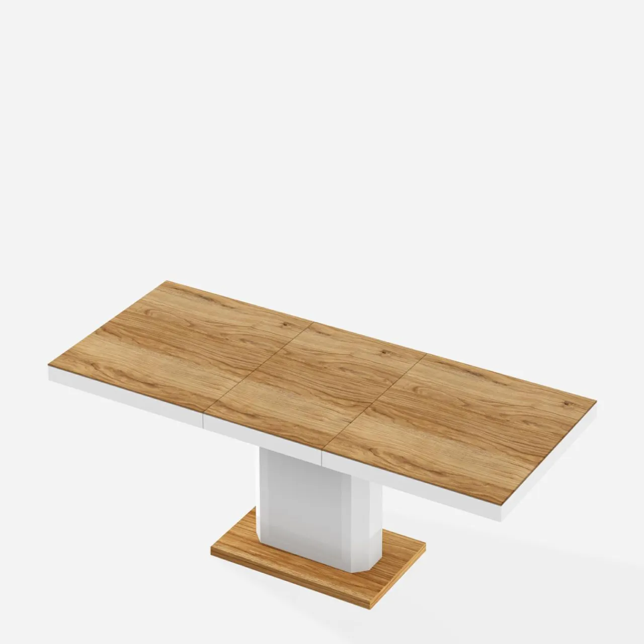 - Długość blatu wynosi 140 cm, po rozsunięciu i dodaniu jednej wkładki (50 cm) zwiększa się do 190 cm.