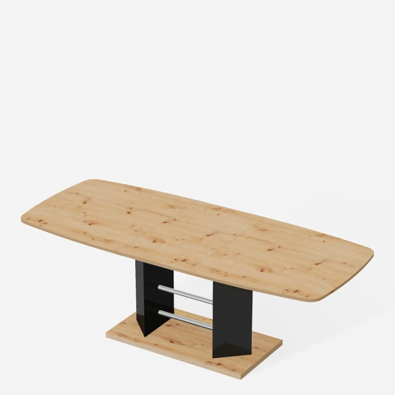 Zamiast tradycyjnych nóg w stole LINOSA 3 wykorzystano ciekawą podstawę, która nadaje niebanalnego wyglądu oraz stabilności całej konstrukcji. Podstawa łączy się z 2 nogami i chromowanymi profilami.