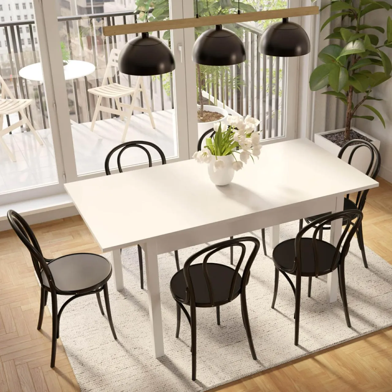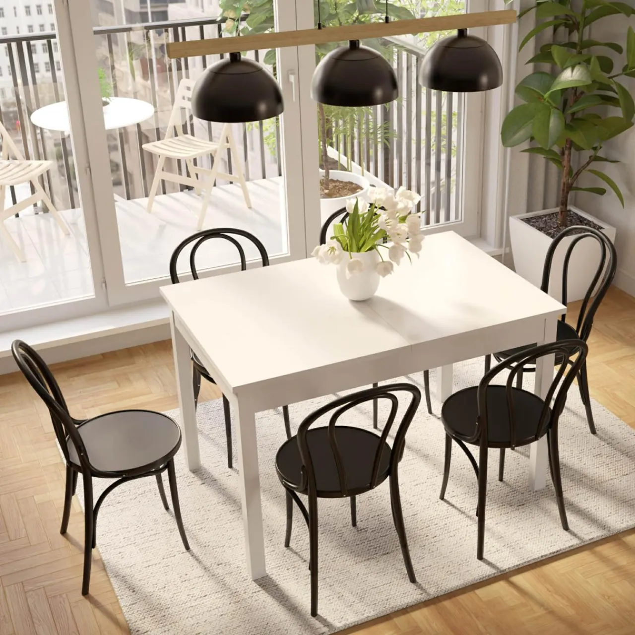- Estetyczny i nowoczesny wygląd – biały blat nadaje wnętrzu lekkości i subtelnej elegancji, umożliwiając łatwe dopasowanie stołu do różnych stylów aranżacji.