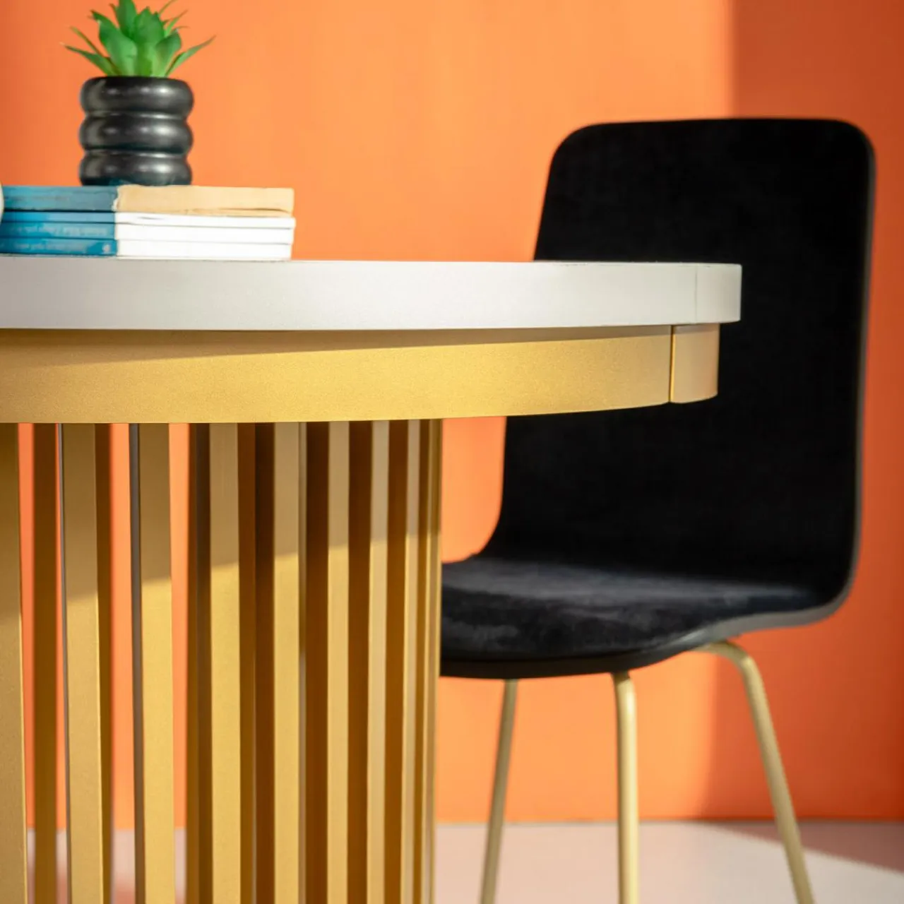 Stół ZEFIRRO wpisuje się w nowoczesne wnętrza – kaszmirowy blat wygląda elegancko, a ażurowa podstawa dodaje aranżacji lekkości.