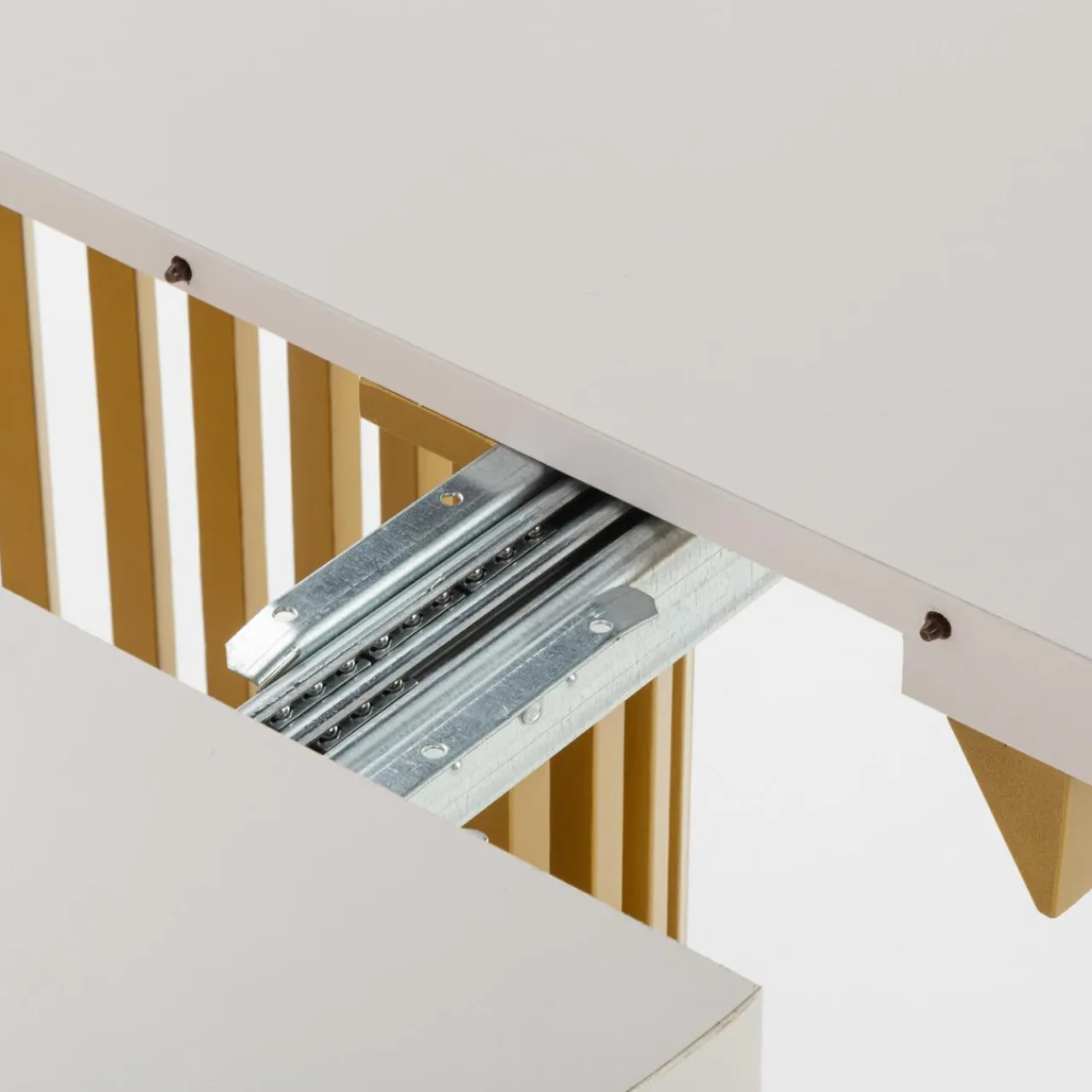 - Stół łatwo się rozkłada dzięki teleskopowej prowadnicy.