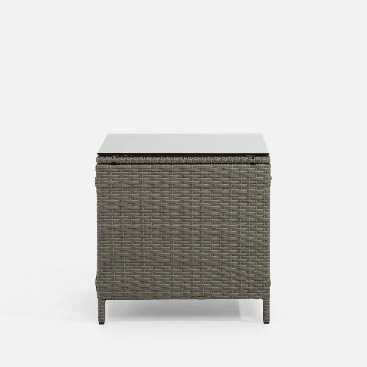 Stolik do ogrodu SKOTI przypomina wyglądem kwadratową kostkę. Niewielkie rozmiary i budowa ułatwiają przenoszenie mebla w dowolne miejsce.