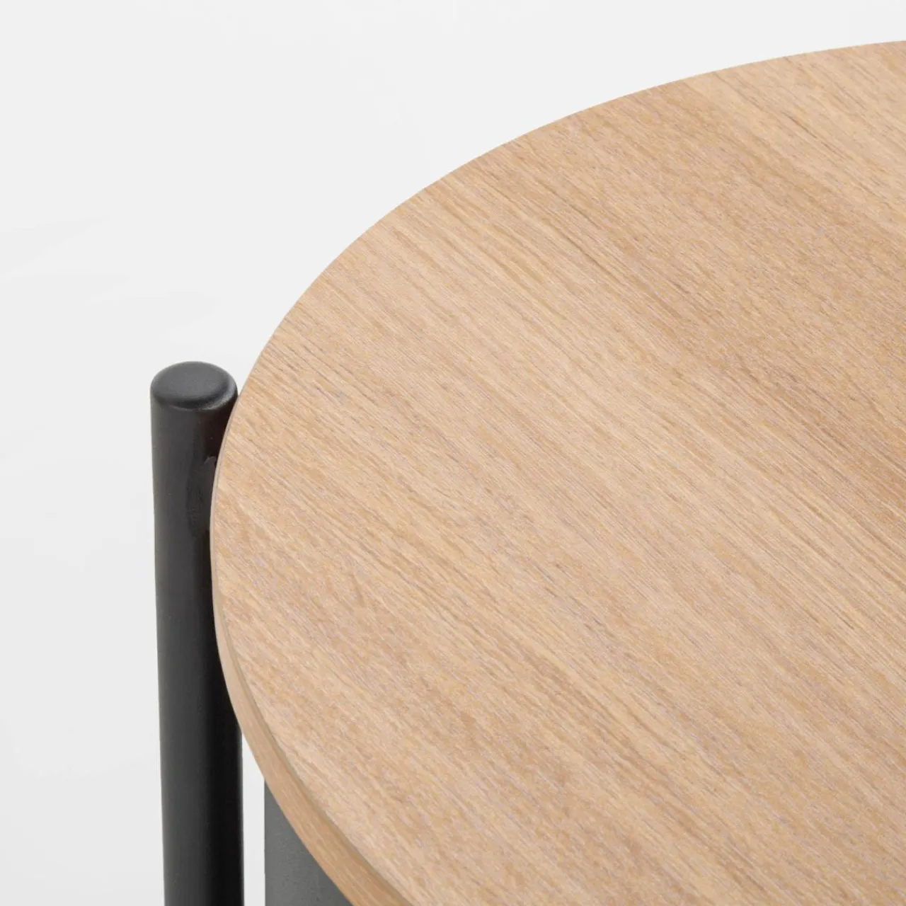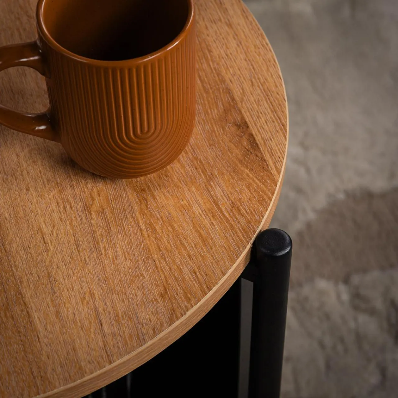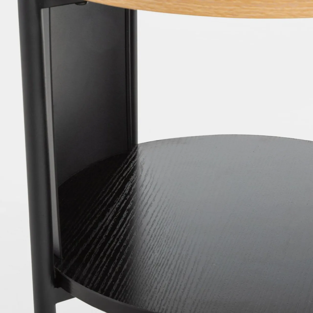 Stolik HILTO świetnie dopełni nowoczesne i industrialne aranżacje, dzięki połączeniu czarnego metalu i imitacji drewna w jasnym i ciemnym wybarwieniu. Okrągły kształt stolika złagodzi linie aranżacyjne.