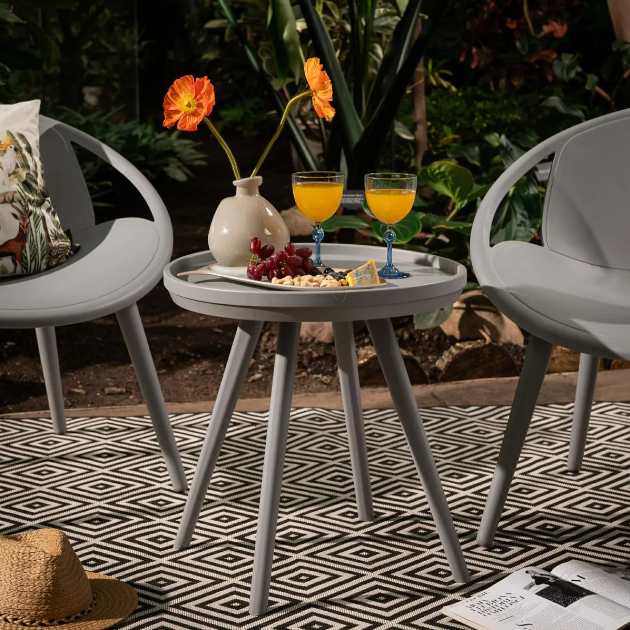 Stolik HAPPIANO jest niski i lekki, dlatego polubią go dorośli i dzieci. Podczas siedzenia na świeżym powietrzu odstawisz jego blat napoje i chłodne przekąski, które będą łatwo dostępne dla wszystkich.