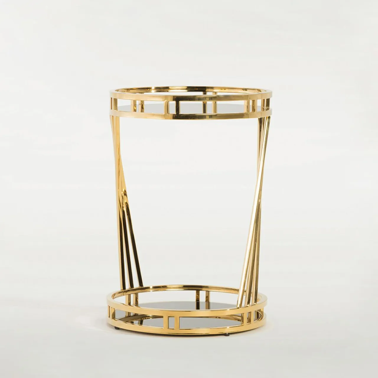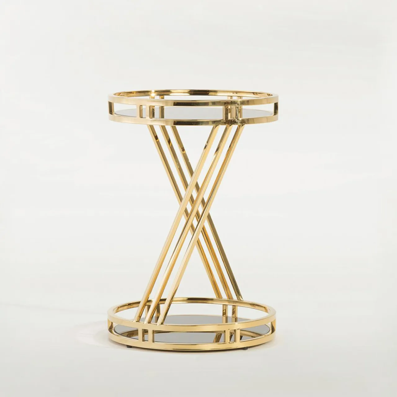 Stolik ENIOCOZI emanuje elegancją dzięki połączeniu czarnego szkła hartowanego ze złotym stelażem.