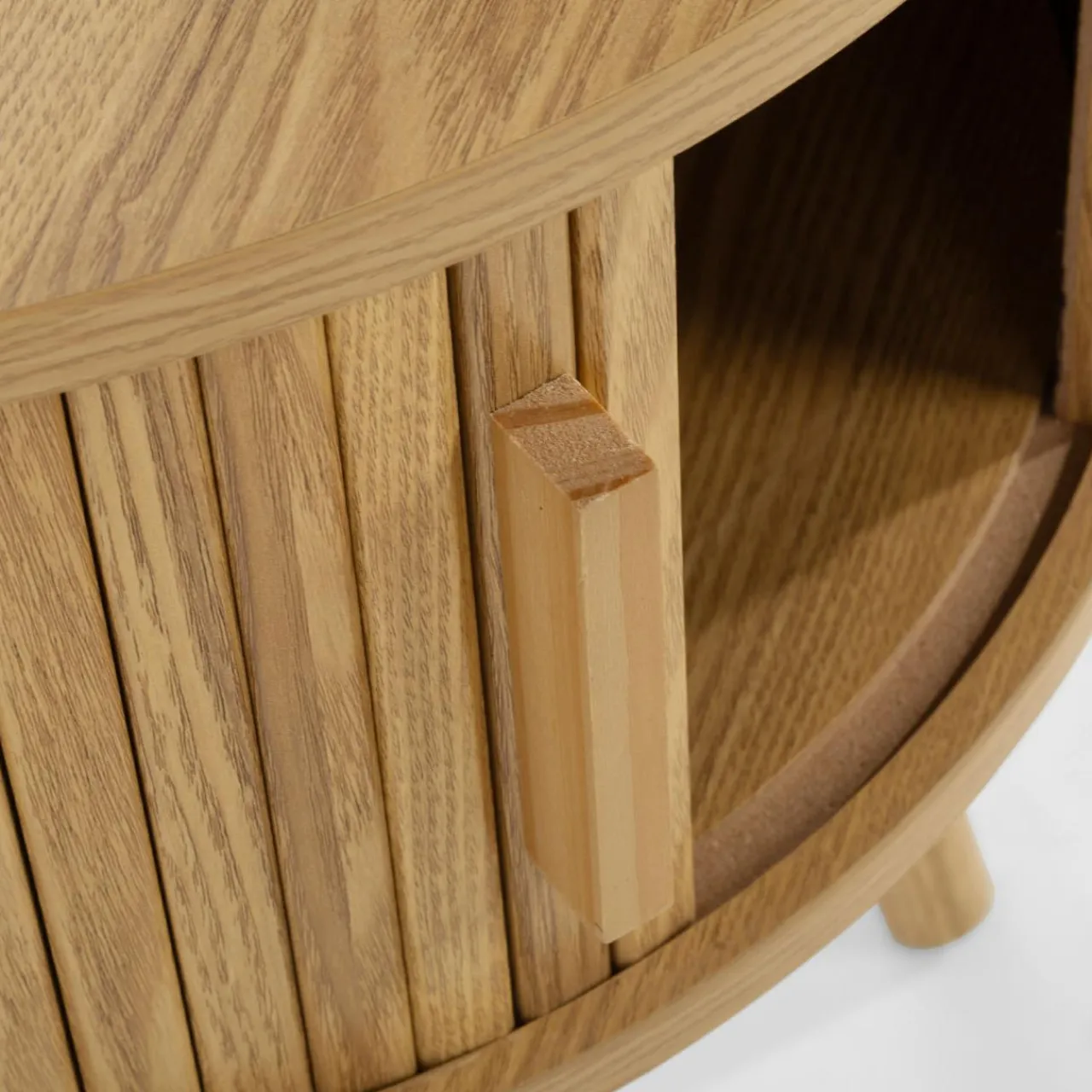Stolik FROSTWIV będzie niebanalnym dodatkiem we wnętrzu. Wyjątkowe przesuwne drzwi wykonane z harmonijkowych listewek przykują spojrzenia i przełamią monotonię gładkich powierzchni.