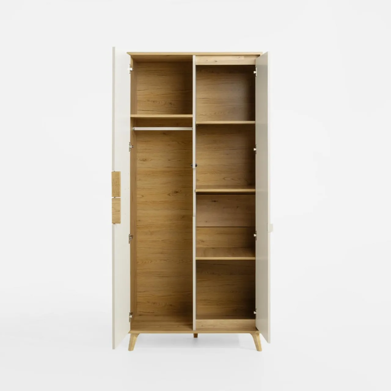 Dzięki szafie 2-drzwiowej BRUNO zapanujesz nad bałaganem w przedpokoju czy salonie. Wykorzystaj półki do ułożenia pudełek do przechowywania lub stosów poskładanej pościeli.