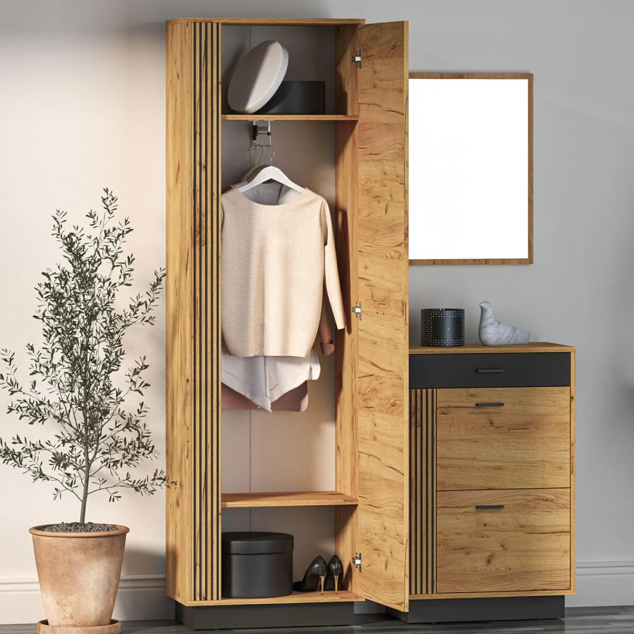 - Zaprojektuj swój wymarzony przedpokój z meblami VASCO. Dopasuj szafki i wieszaki do pomieszczenia, tworząc miejsce na wszystkie kurtki i buty.