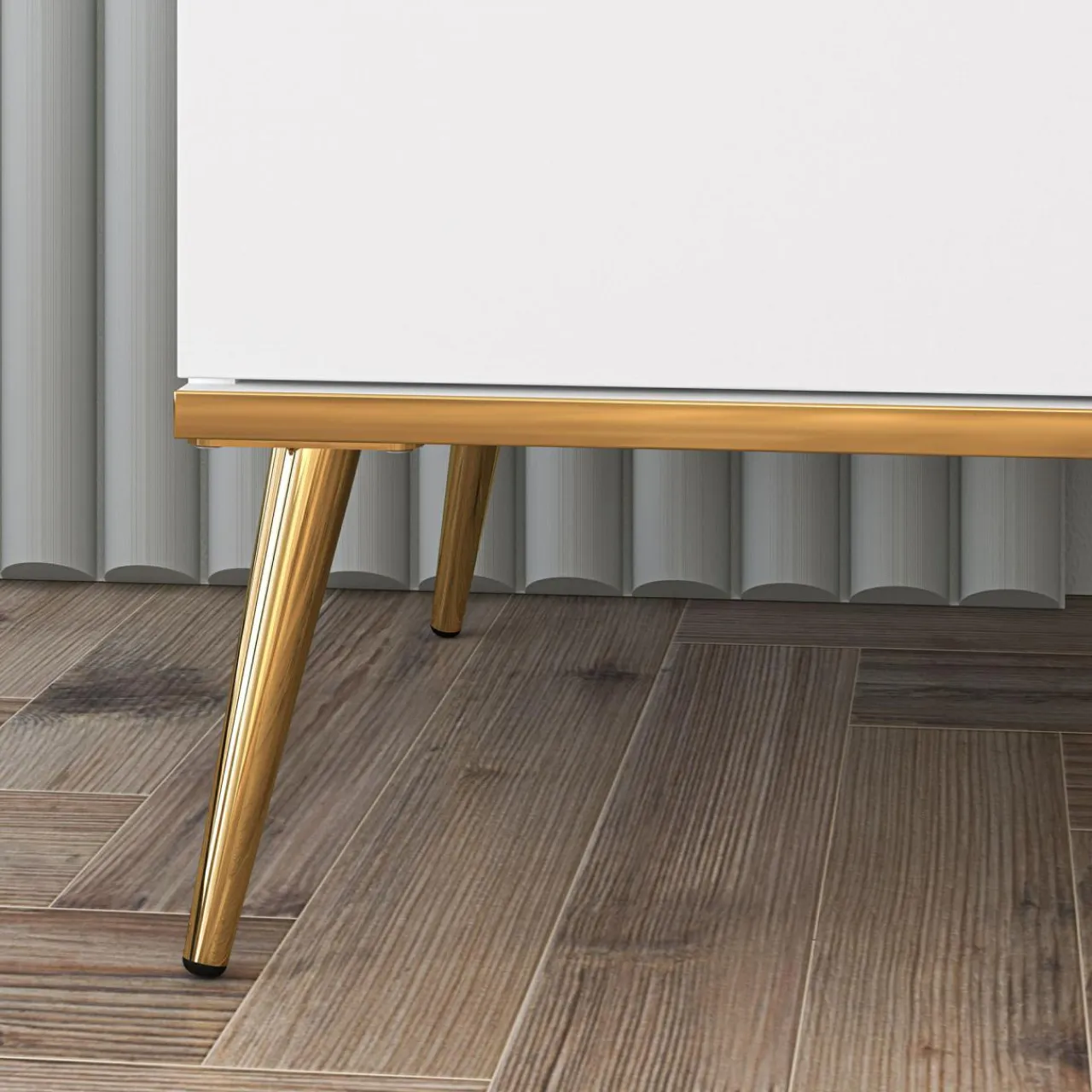 - Postaw na nowoczesne meble z połyskiem. Subtelne, złote elementy sprawią, że pomieszczenie przemieni się w eleganckie wnętrze w stylu glamour.