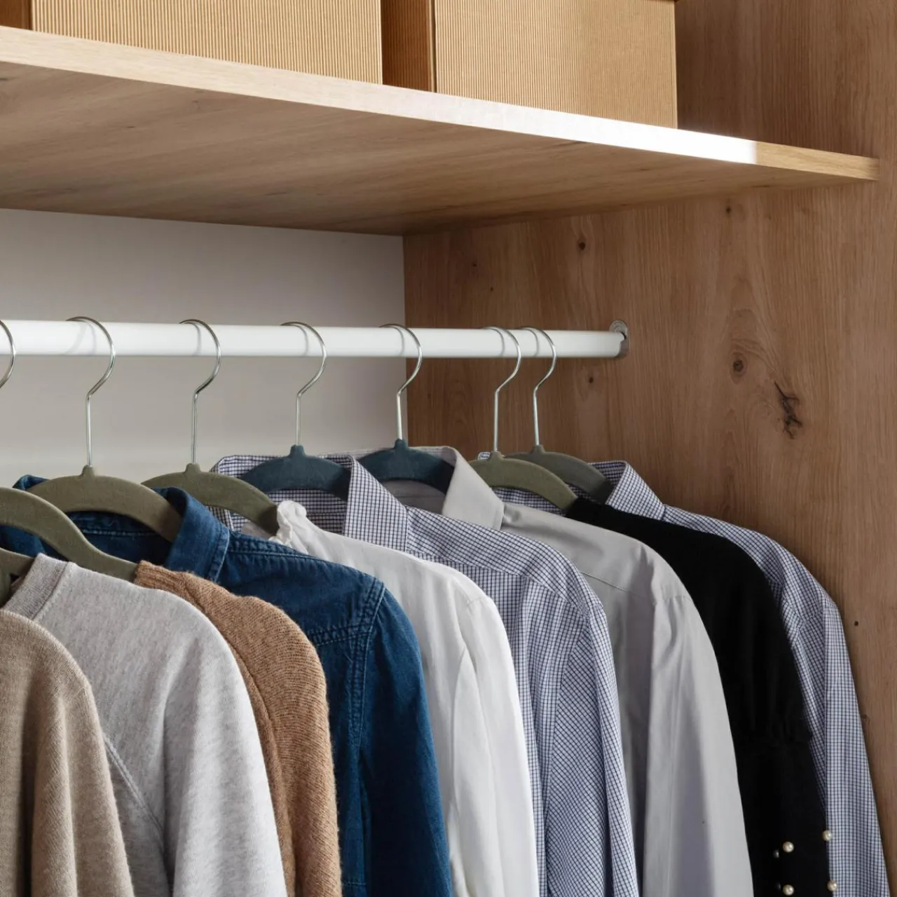 - Zmień wnętrze szafy — z dedykowanymi półkami możesz wymienić drążek na dodatkowe półki.
