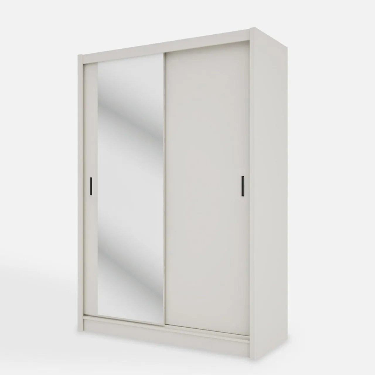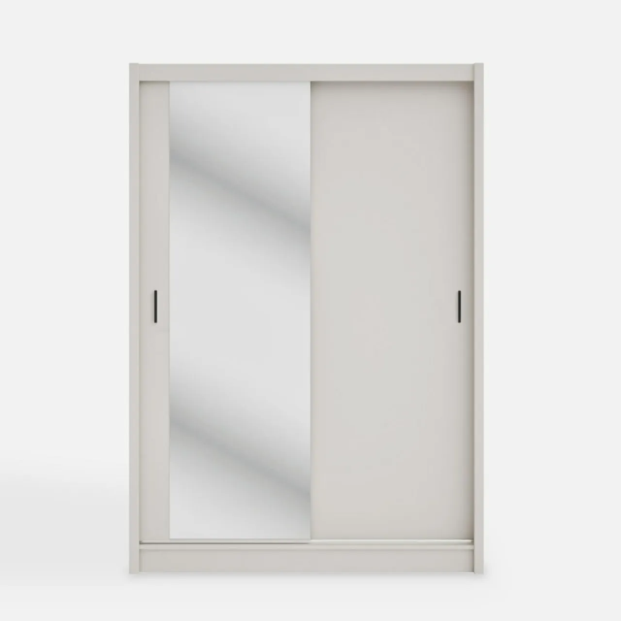 Szafa przesuwna z lustrem NESS o szerokości 150 cm w kolorze kaszmir to praktyczne rozwiązanie do sypialni, garderoby lub przedpokoju.