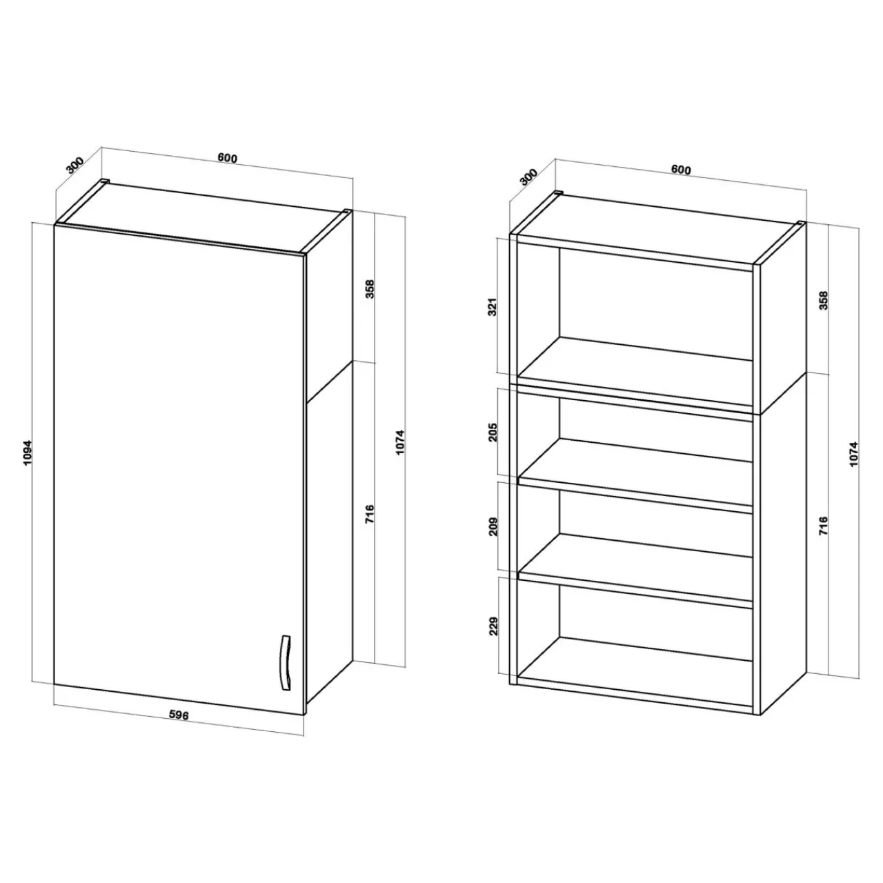 - Wysoka na 108 cm bryła mebla jest łączona z 2 korpusów i podzielona na 4 wnęki. Pozwala na intuicyjnie rozmieszczone naczyń oraz produktów żywnościowych.