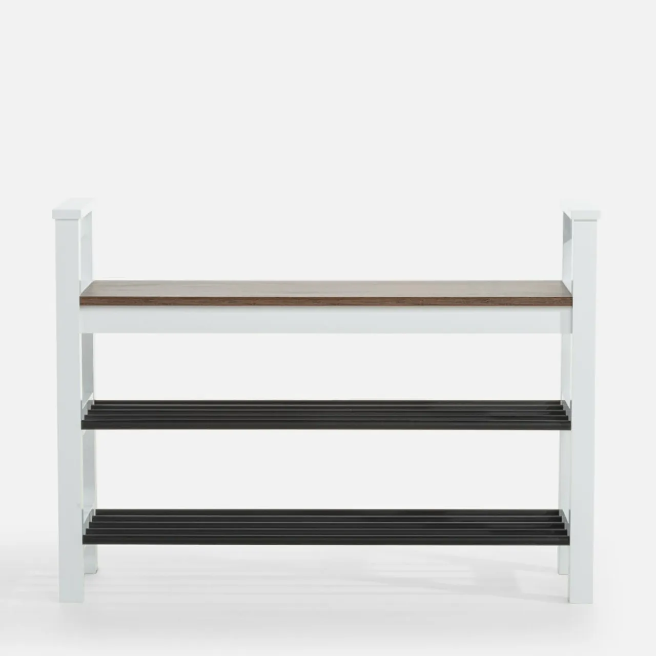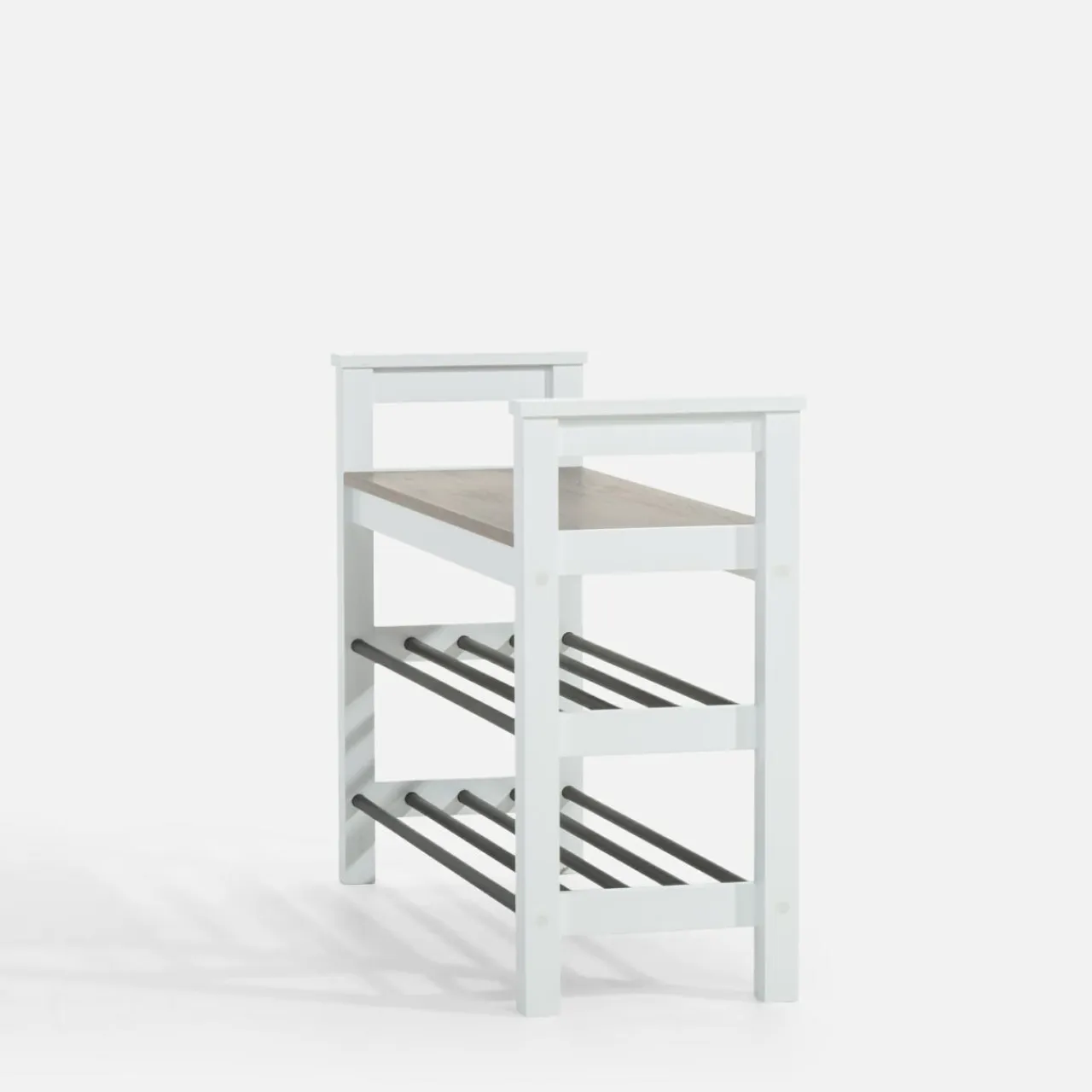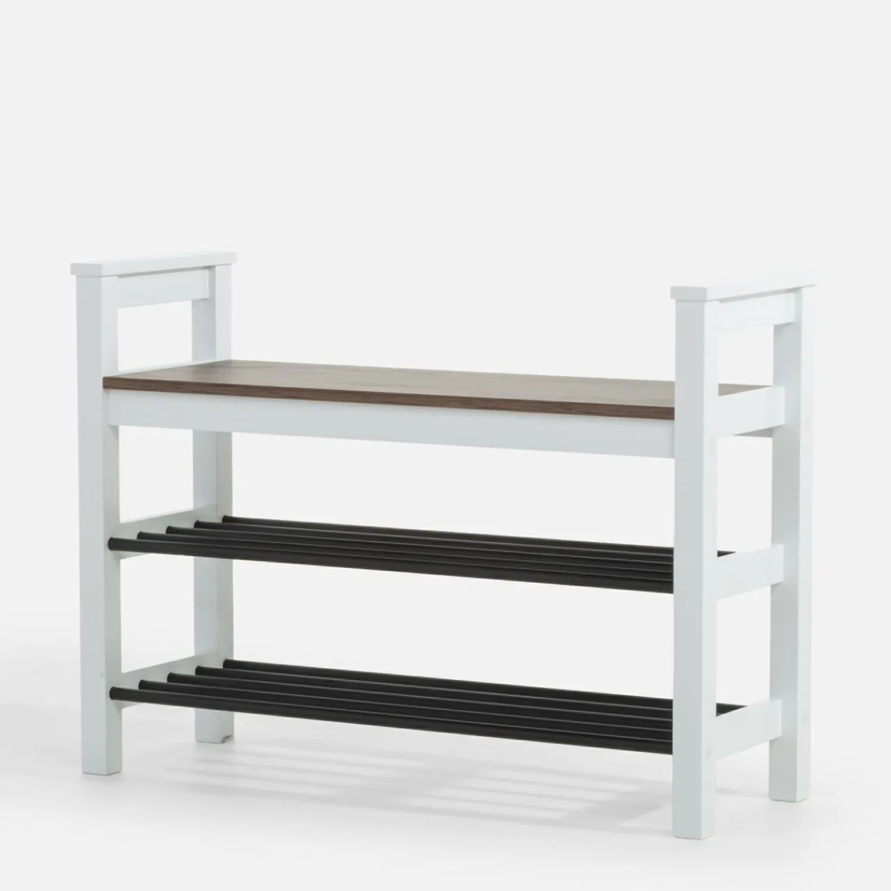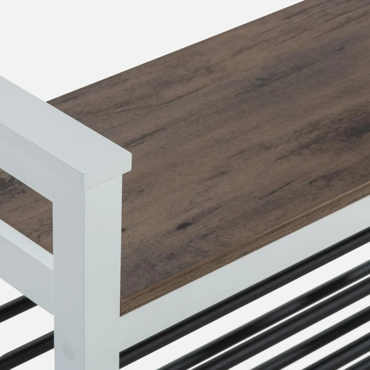 Neutralne kolory brązu i bieli wpasują się w każdy aranż, a półki na buty pozwolą Ci zapanować nad bałaganem.