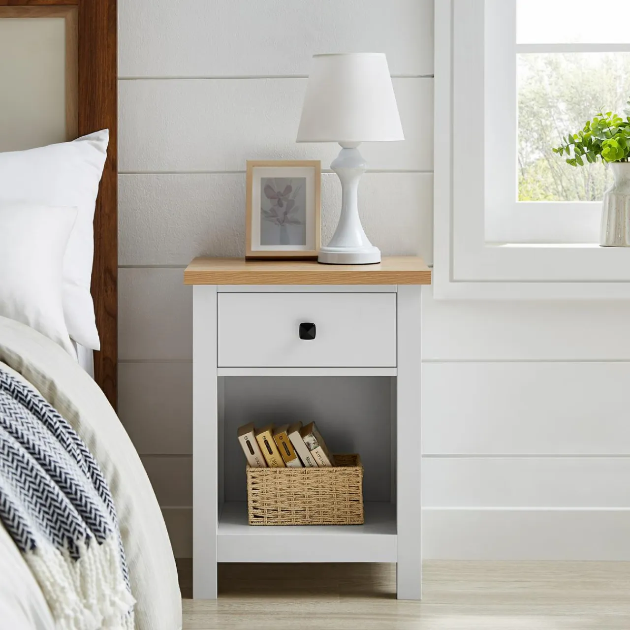 - Na blacie postawisz lampkę nocną i odstawisz szklankę z wodą.
