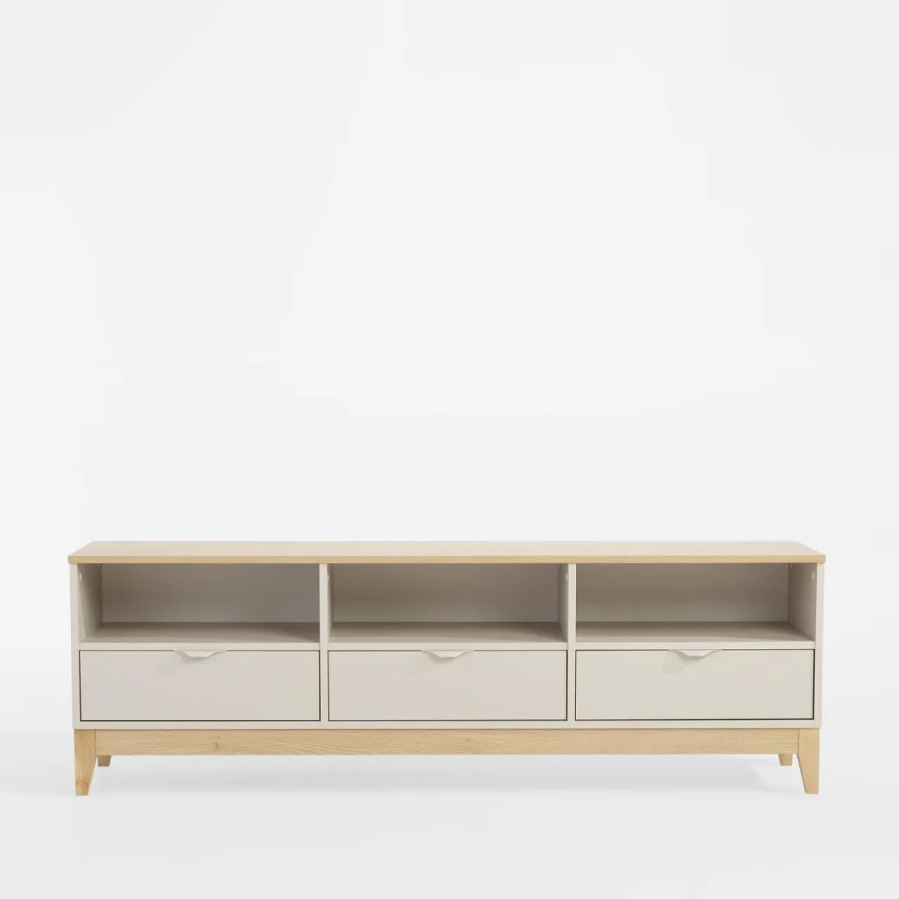- 3 pojemne szuflady – zapewniają miejsce na drobne akcesoria, takie jak piloty, kable czy gry, pomagając utrzymać porządek i umożliwiając łatwy dostęp do niezbędnych przedmiotów.