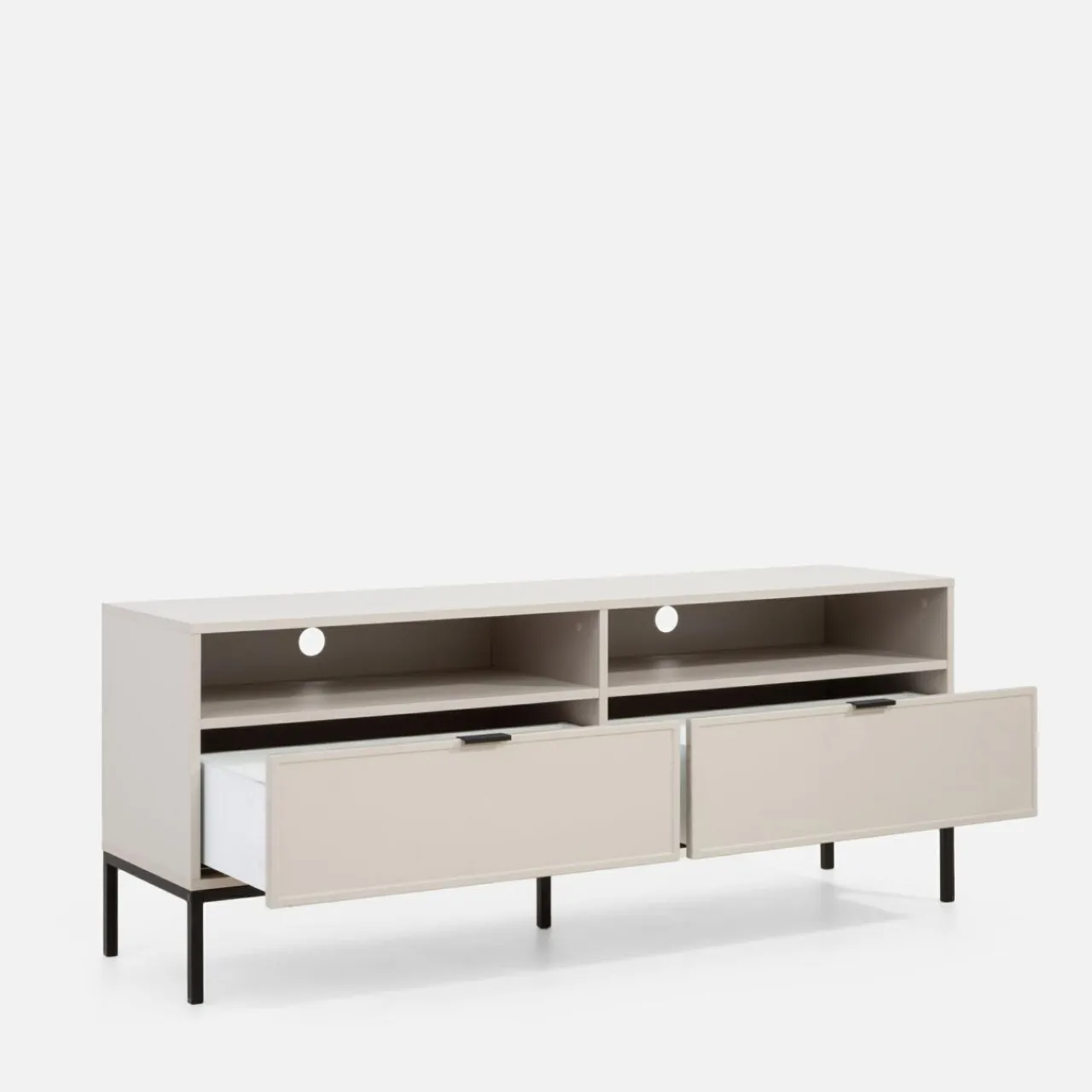 - 2 otwarte wnęki – zapewniają łatwy dostęp do urządzeń, takich jak dekodery, konsole czy odtwarzacze.