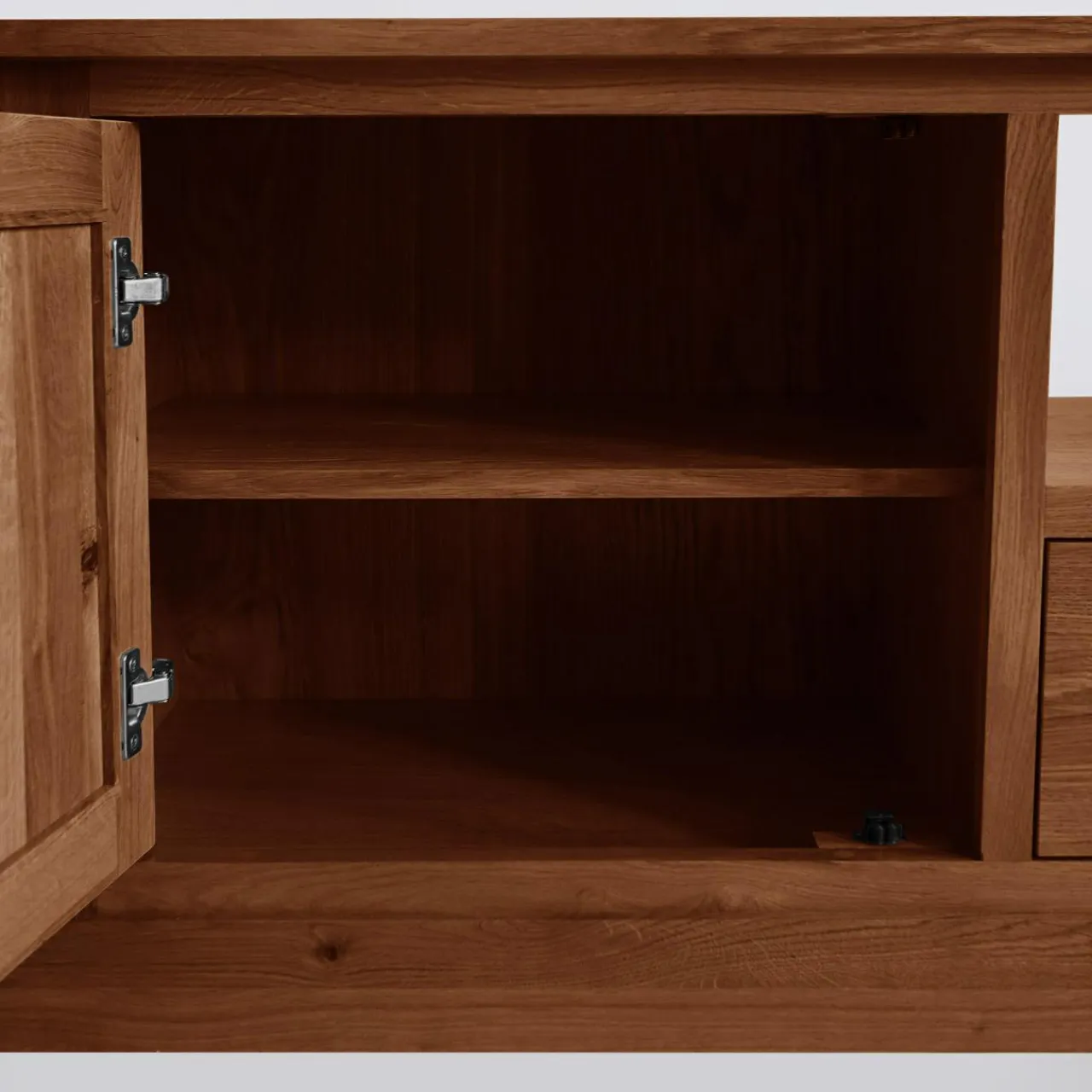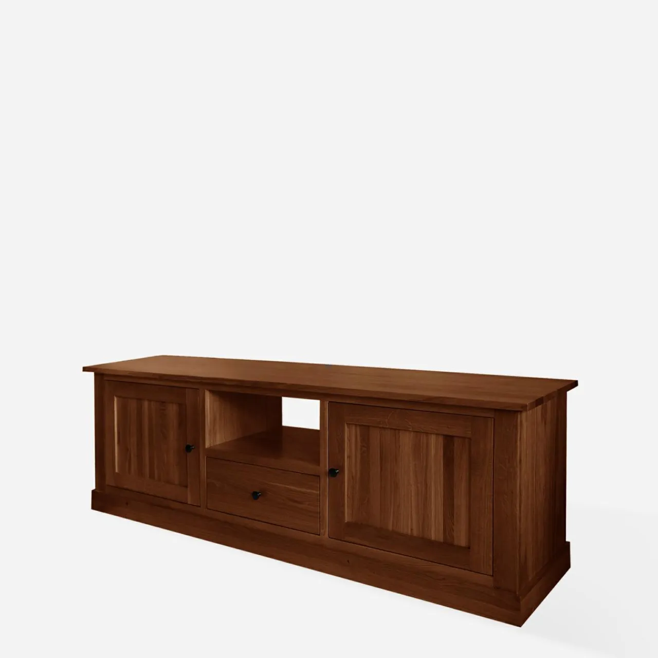 Szafka RTV STELLA to elegancki mebel z litego drewna w odcieniu dąb koniakowy. Wyposażona w pojemną przestrzeń do przechowywania i przestronny blat, spełni oczekiwania zarówno miłośników klasyki, jak i praktycznych aranżacji.