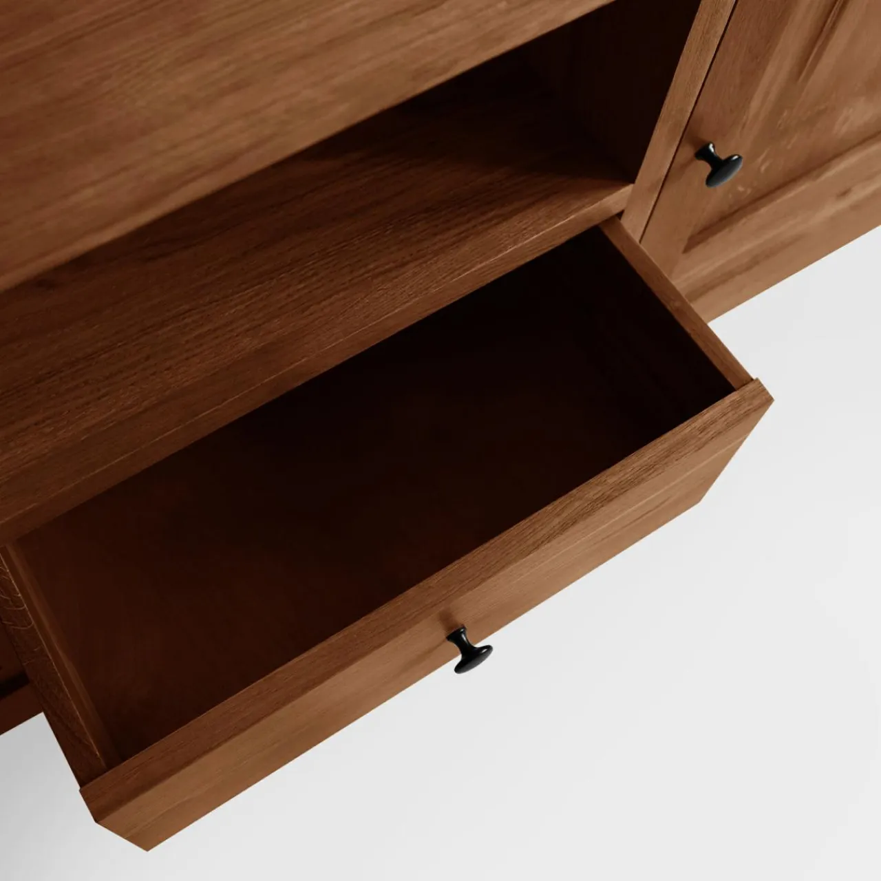 - Szeroki blat (175 cm) – umożliwia wygodne ustawienie telewizora oraz dekoracji, takich jak ramki, świece czy roślin.