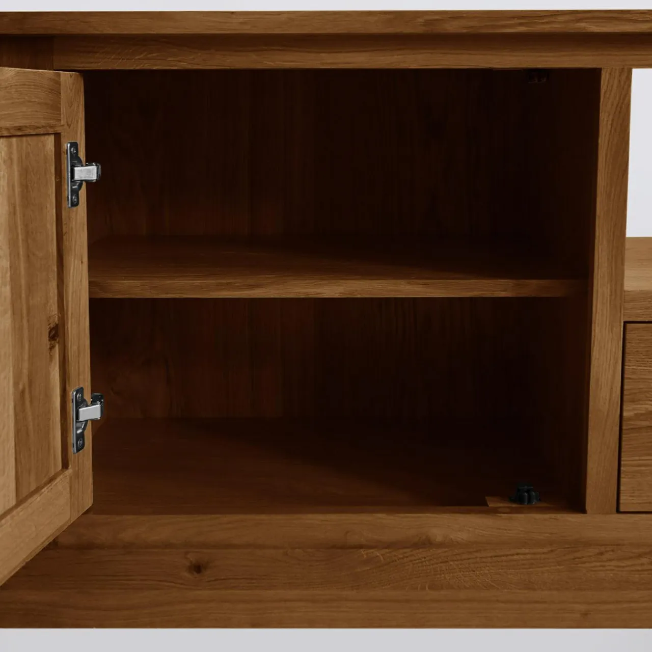 Szafka RTV STELLA to elegancki mebel z litego drewna w odcieniu dąb rustykalny. Wyposażona w pojemną przestrzeń do przechowywania i przestronny blat, spełni oczekiwania zarówno miłośników klasyki, jak i praktycznych aranżacji.
