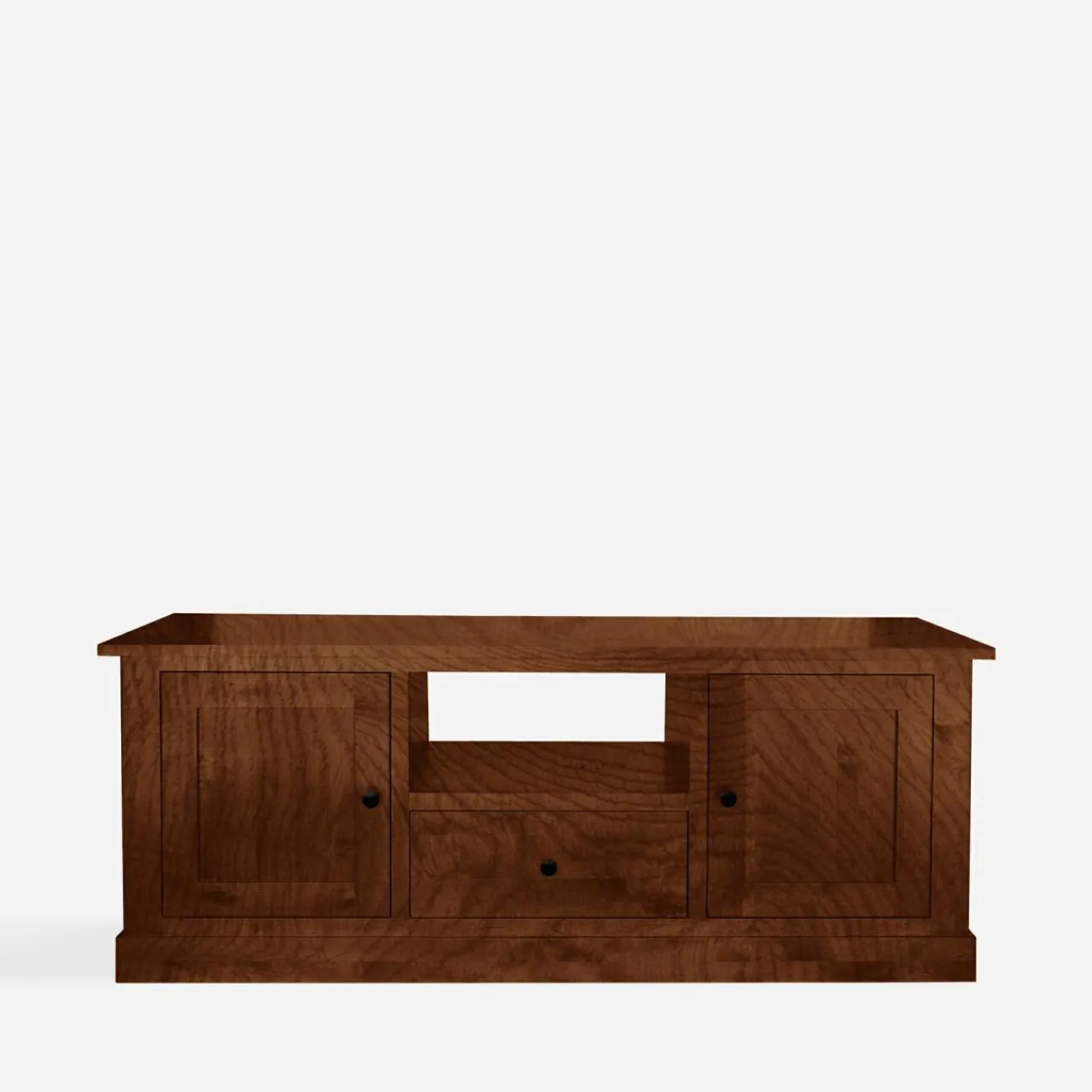 Szafka RTV STELLA to praktyczny mebel wykonany z litego drewna w kolorze dąb koniakowy. Dzięki szerokości 150 cm i przemyślanemu układowi przechowywania, doskonale sprawdzi się w salonie jako miejsce na sprzęt RTV oraz dodatkowe akcesoria.