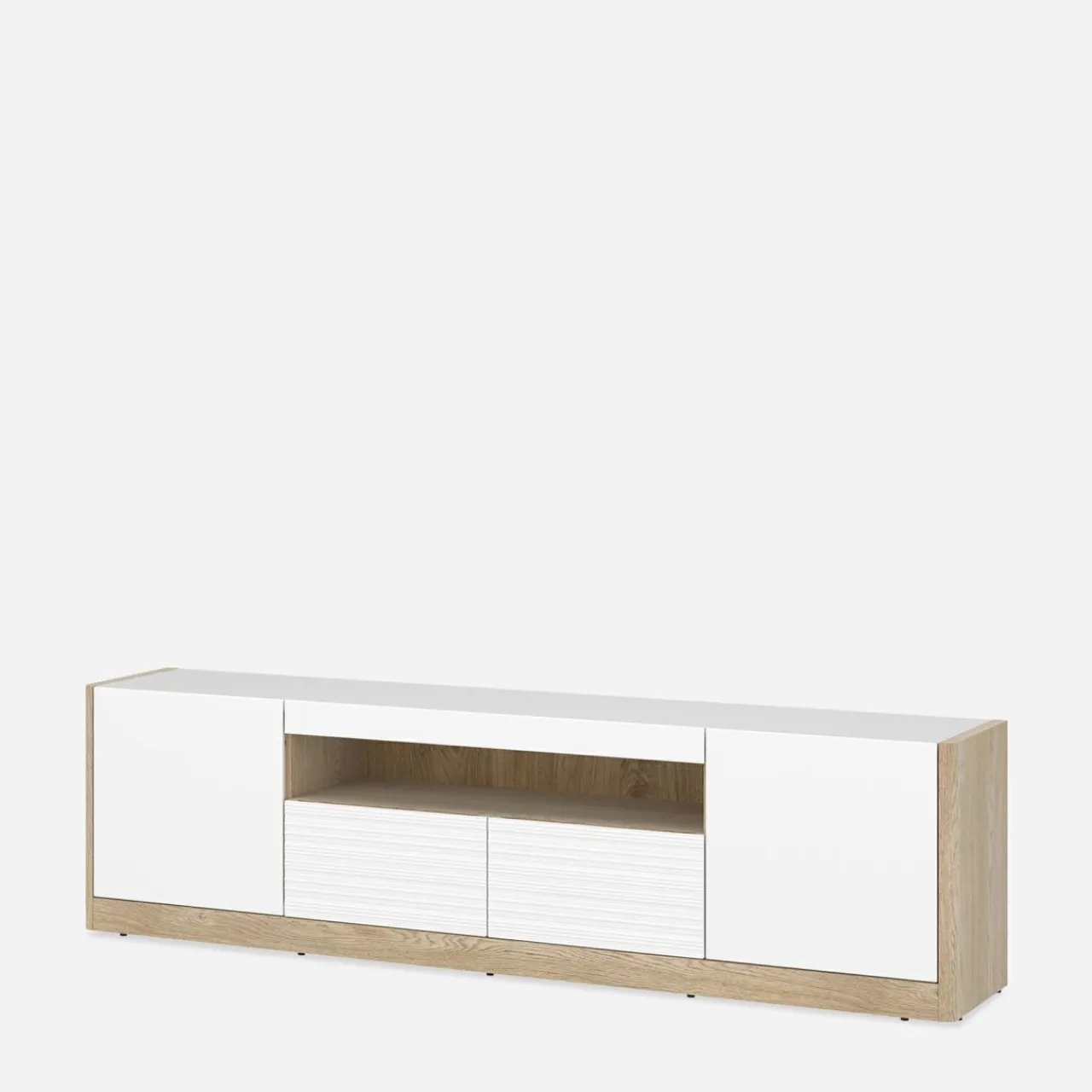 - 2 szuflady i 2 szafki z drzwiczkami – zapewniają dużo miejsca na przechowywanie kabli, pilotów czy kolekcji płyt, pomagając w utrzymaniu porządku.