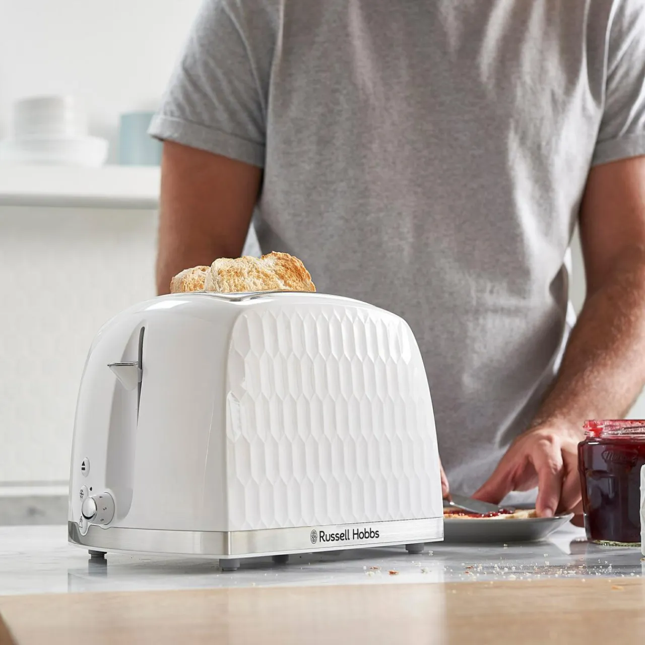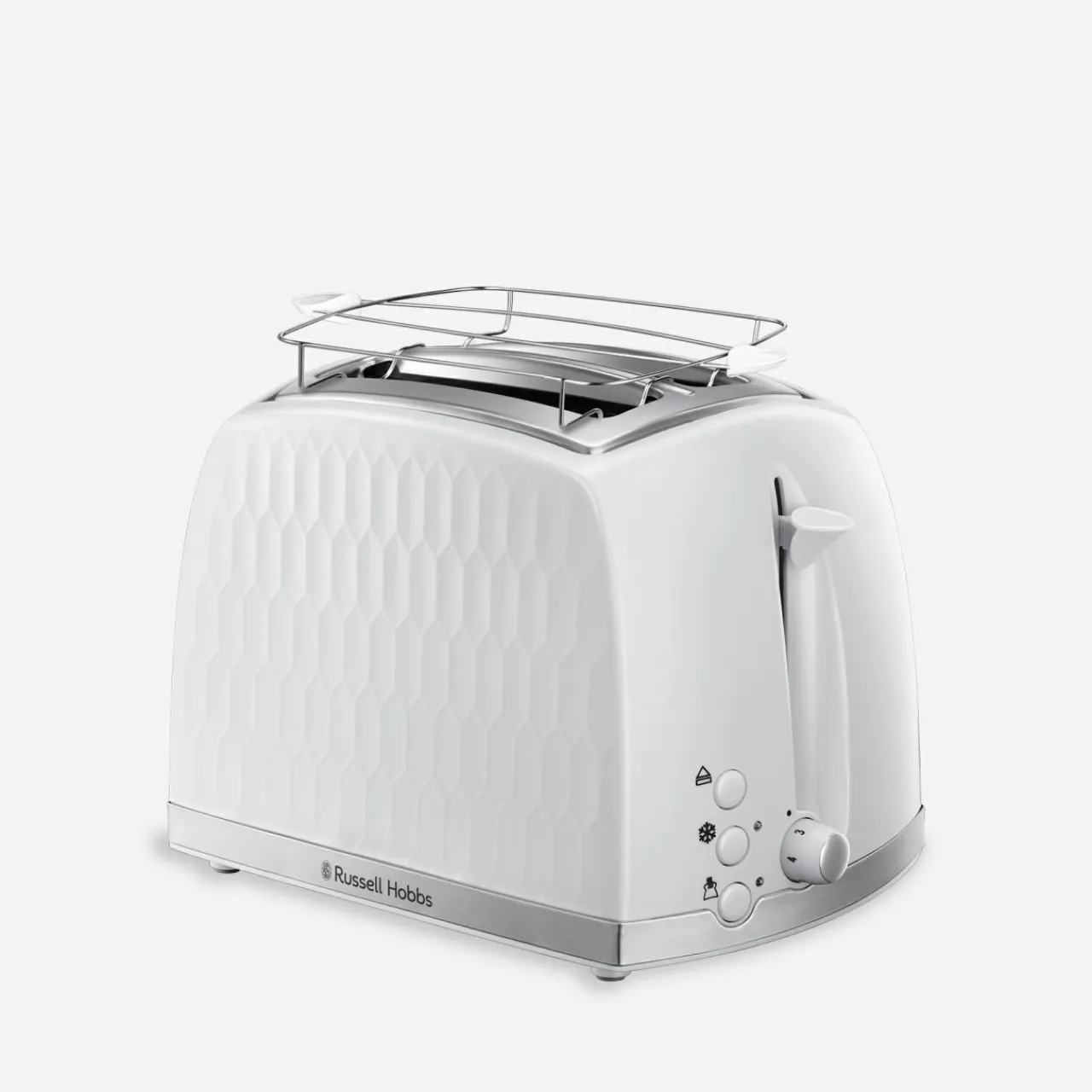 Dodaj swojej kuchni wyjątkowy akcent dzięki tosterowi z 2 szczelinami HONEYCOMB z eleganckim wykończeniem Premium White Plastic o strukturze plastra miodu. Zapewnij sobie idealne tosty każdego ranka w stylowy sposób!