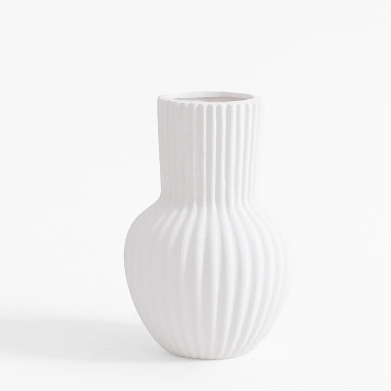 Prosty, a zarazem efektowny design sprawia, że ten biały wazon będzie idealnym uzupełnieniem zarówno nowoczesnych, jak i klasycznych aranżacji. Jego subtelne zdobienia nadają strukturze lekkości, a matowa powierzchnia podkreśla wyjątkowy charakter produktu.