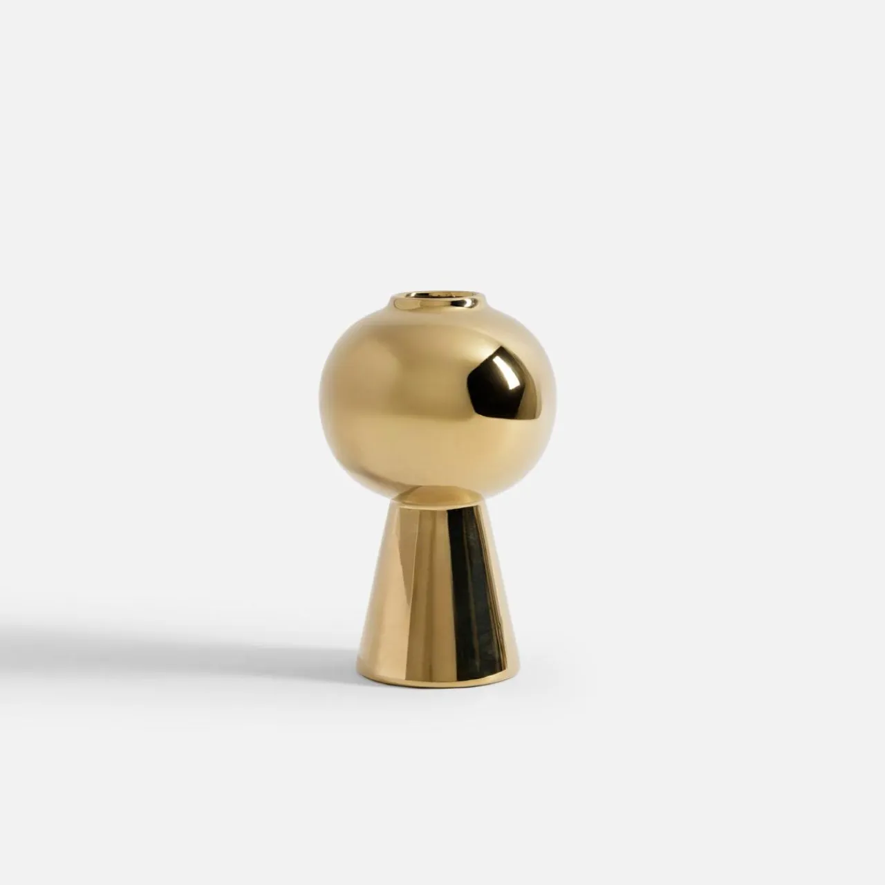 Ten złoty wazon wyróżnia się nowoczesnym designem i eleganckim połyskiem, idealnym do stylowych wnętrz.